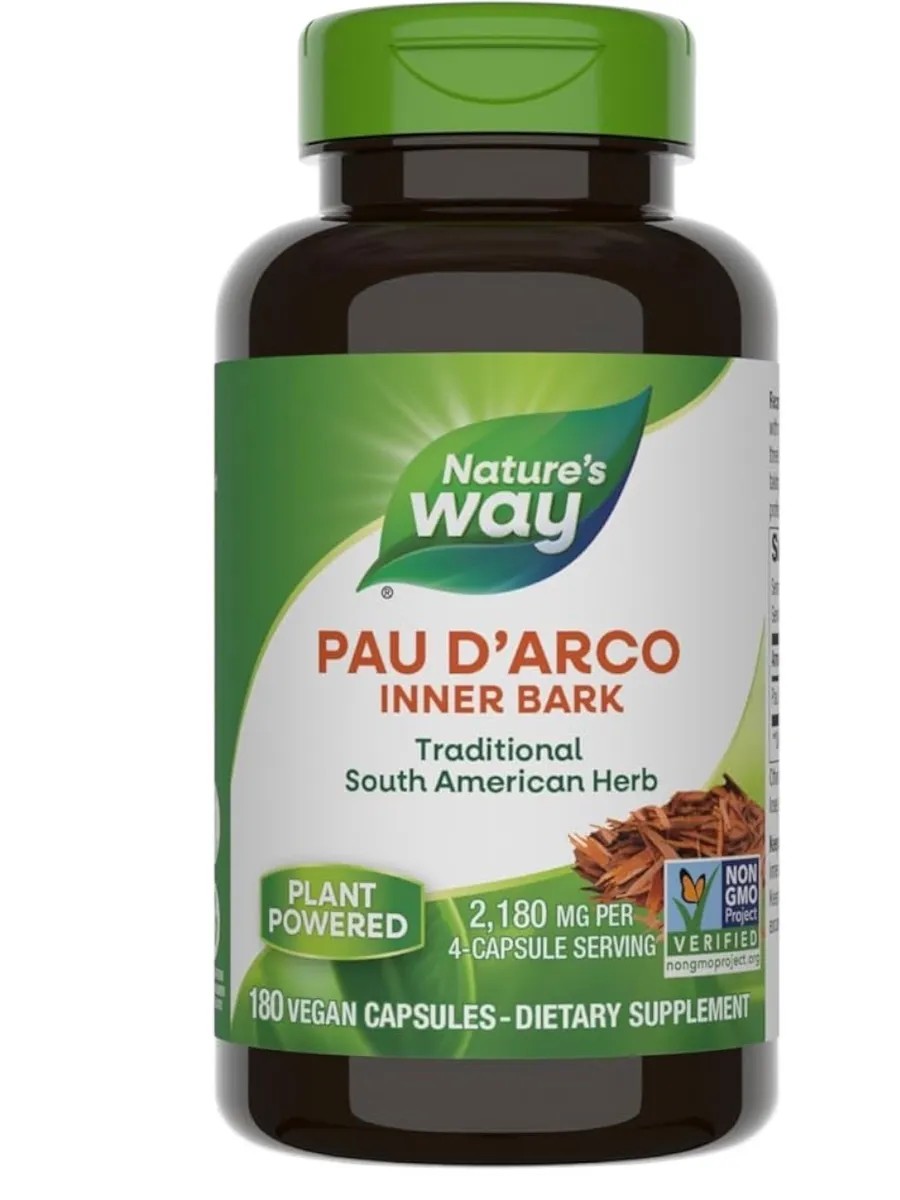 | Package contents | Pau d'Arco ant tree 180 capsules; Pau d’arco natures way; Iherb; USA dietary supplement; Antifungal complex; From candida |