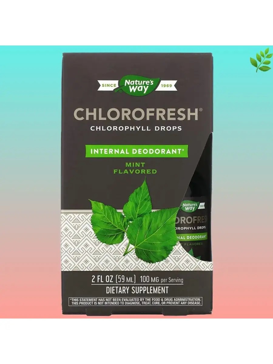 Chlorofresh - это жидкий комплекс хлорофилла, полученный из растительного сырья премиального качества, который используется в качестве внутреннего дезодоранта. Хлорофилл — это пигмент, придающий растениям и водорослям зеленый цвет. Хлорофилл от Nature's Way получают из листьев белой шелковицы.