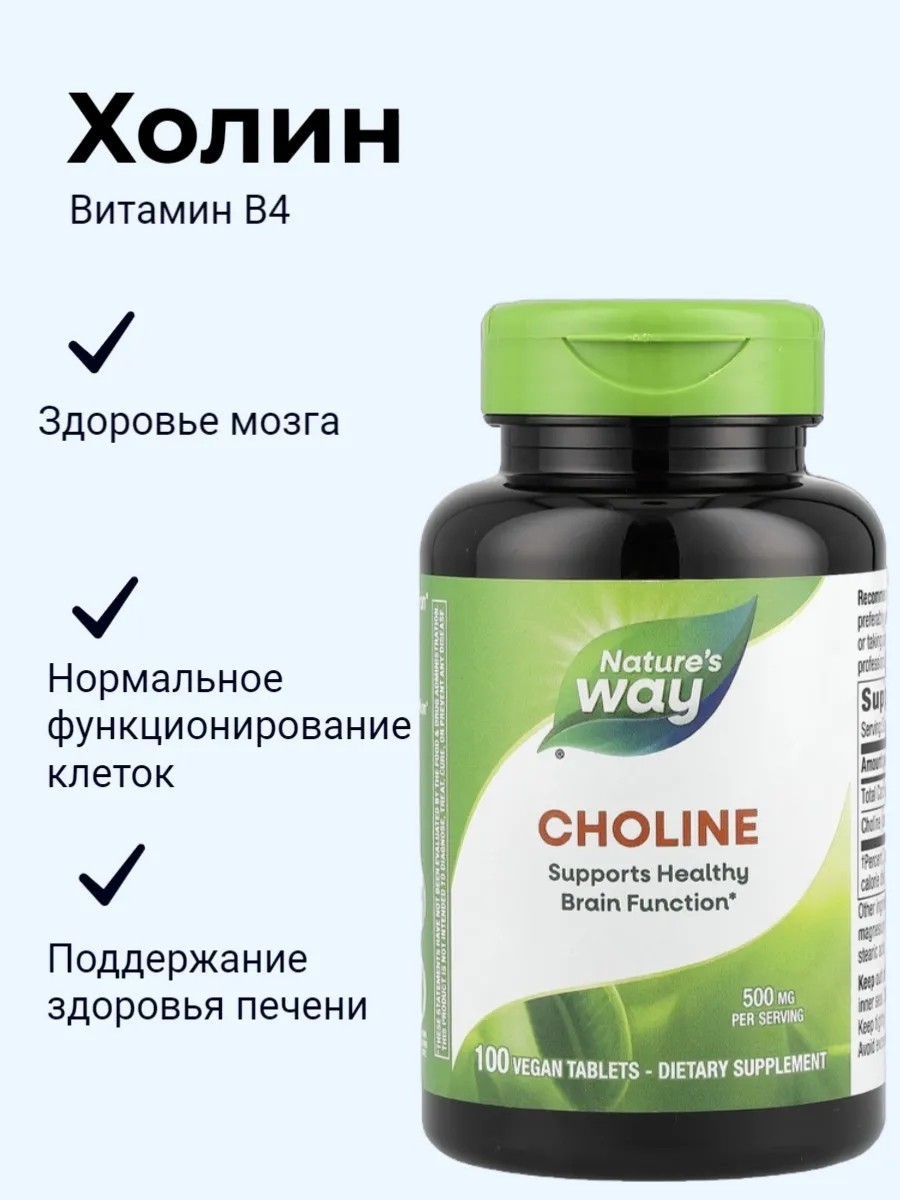 Nature's Way Холин, Choline, 500 мг, 100 таблеток