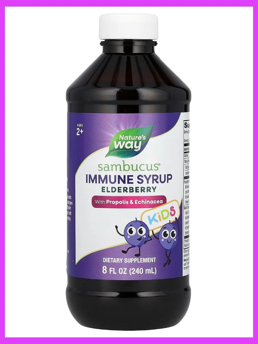 Sambucus Kids от Nature’s Way — это натуральный сироп для поддержки иммунной системы ребенка, разработанный специально для детей старше двух лет. Основу сиропа составляют экстракт бузины, прополис и эхинацея, известные своими иммуностимулирующими свойствами. Продукт изготовлен с использованием натуральных ингредиентов и подходит для ежедневного употребления в период сезонных простуд и эпидемий гриппа.