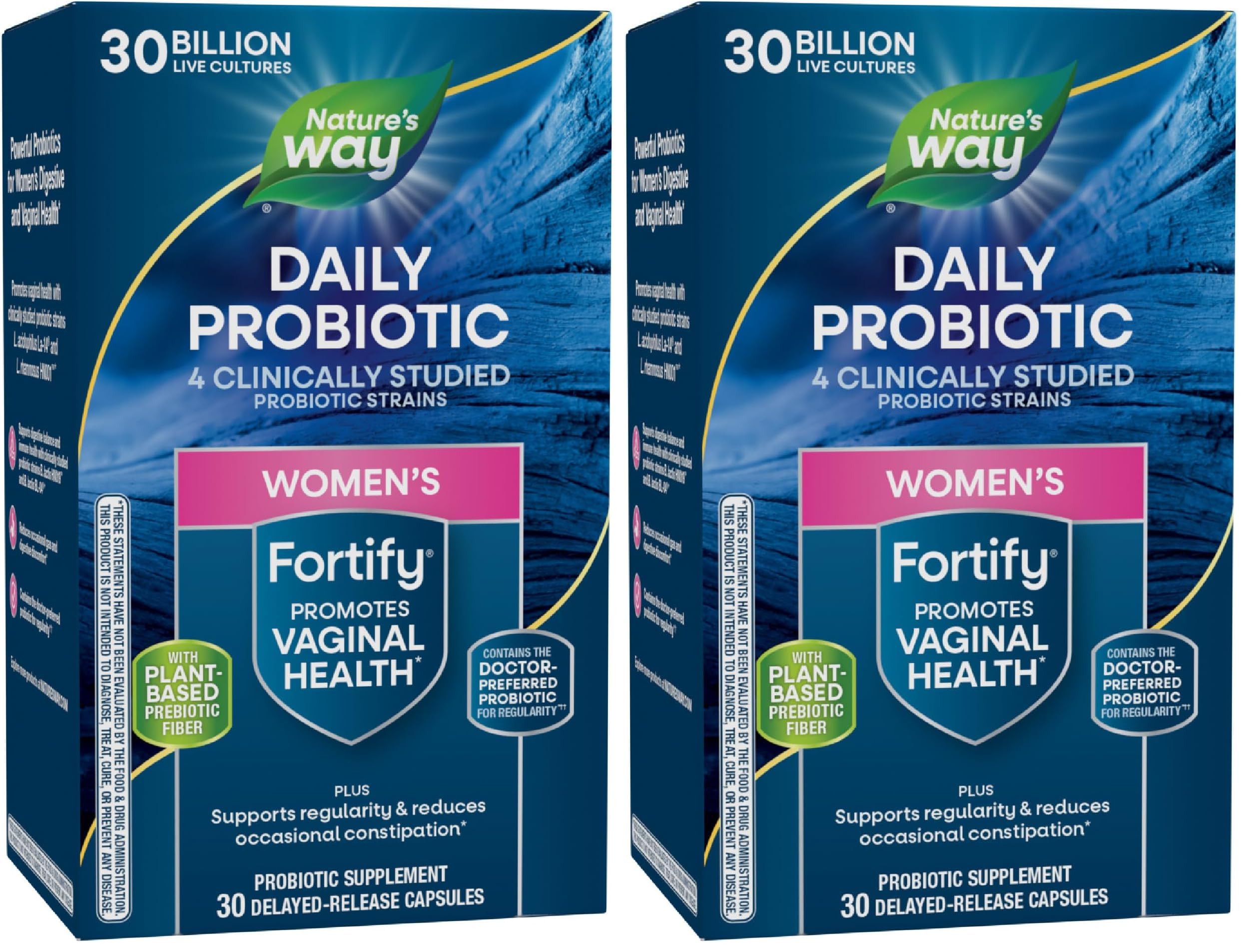 Nature's Way Fortify Daily Probiotic for Women 30 Billion Live Cultures 10 Strains Prebiotics Supports Digestive & Immune Health* No Refrigeration Required 30 Capsules (Packaging May Vary)