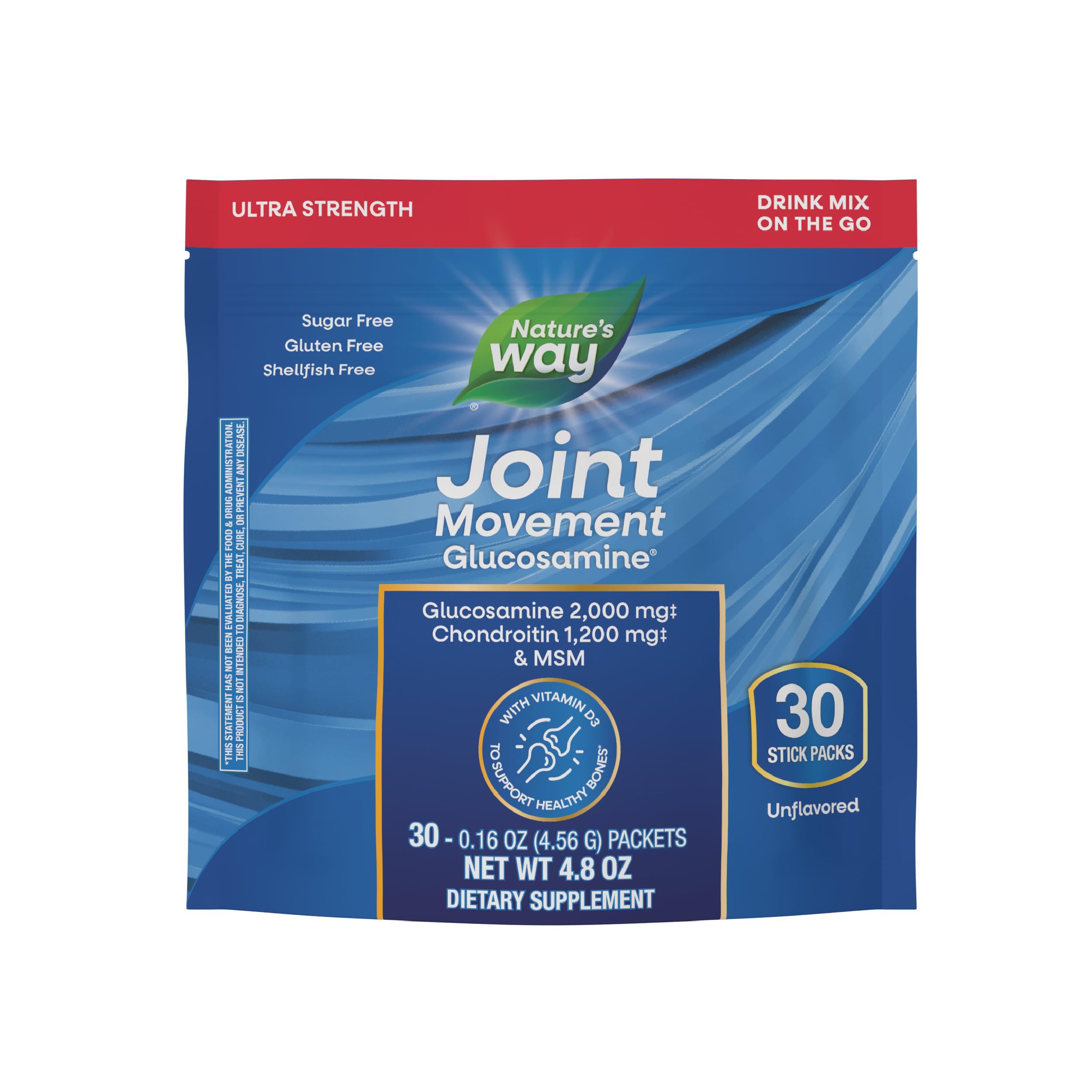 At Nature's Way, we believe nature is the ultimate problem solver. For over 50 years, we have looked to the natural world for inspiration. Our quality vitamins and joint support supplements are formulated to help you find your way to wellness . Certified Gluten Free glucosamine chondroitin with msm No sugar or shellfish. Convenient glucosamine chondroitin powder packets are ideal for on-the-go use Adults, mix 1 packet in 4-6 fl oz of water, juice, or a protein shake daily. A supplement formulated with more glucosamine per serving than the leading brand(2) with 2,000 mg glucosamine per serving, a building block of cartilage tissue. Nature's Way Joint Movement Glucosamine Drink Mix is an ultra-strength formula with glucosamine and chondroitin MSM and vitamin D3, which supports healthy bones and muscle function (1).