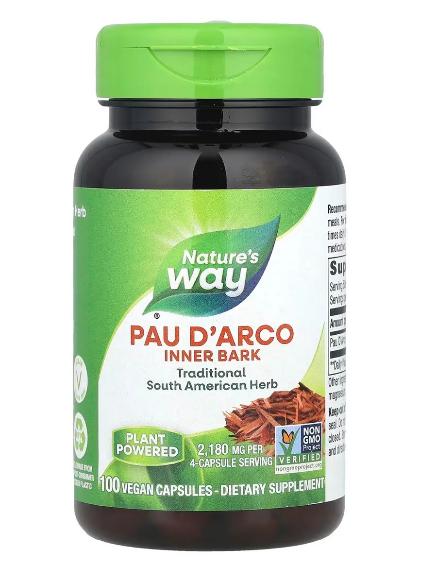 Американские витамины оригинал iherb Nature's Way Pau D'Arco Пау Де Арко Кора Муравьиного дерева 100 веганских капсул.Традиционное Бад из Южной Америки.