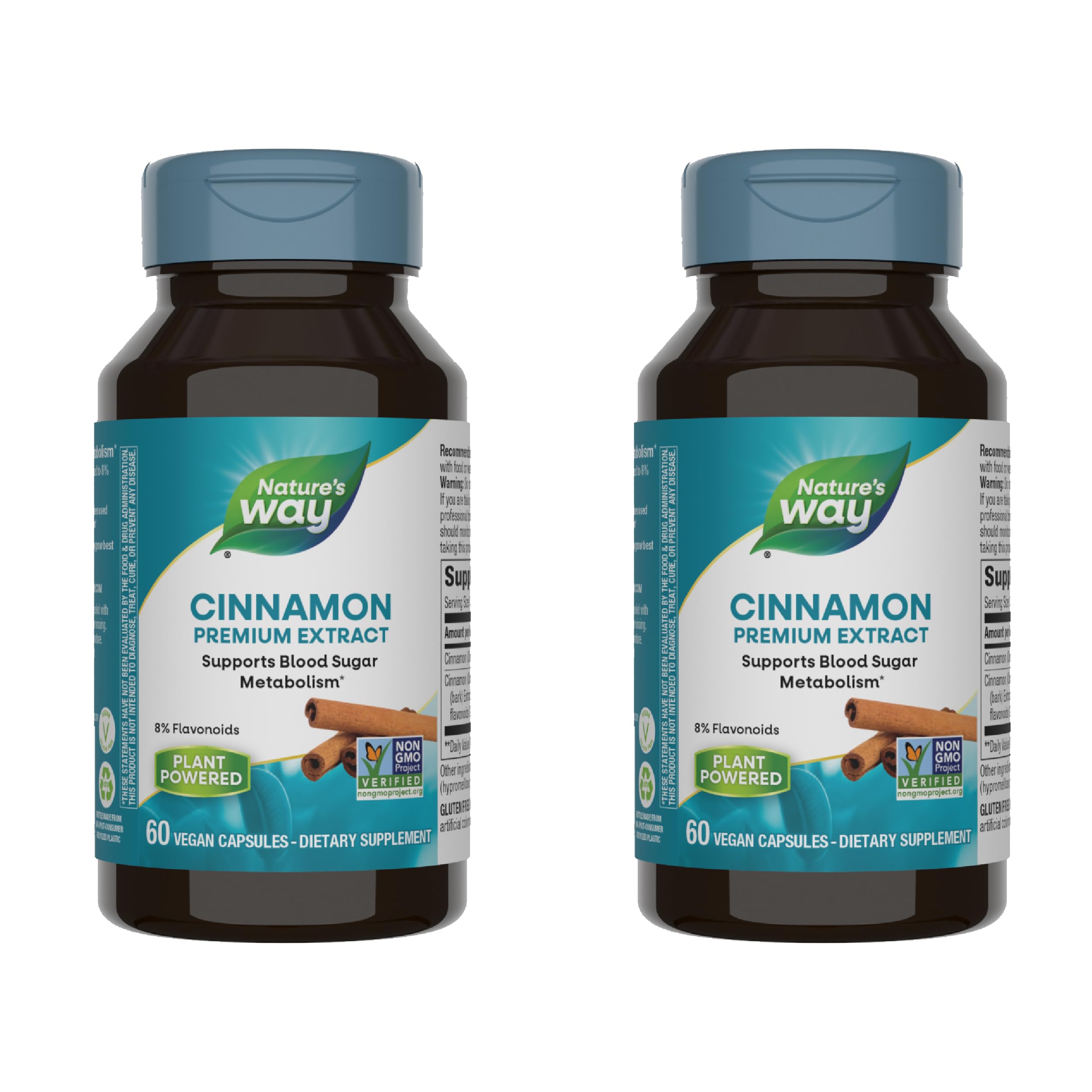 Nature's Way Premium Extract Cinnamon Standardized to 8% Flavonoids 60 Vcaps (Pack of 2)