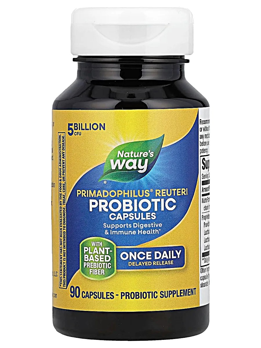 | Ingredients | NutraFlora scFOS (short-chain fructooligosaccharides); Proprietary probiotic blend with 5 billion CFU; Lactobacillus rutheniferum; Lactobacillus acidophilus; Lactobacillus rhamnosus; Rice maltodextrin; Plant-based capsule (hypromellose, gellan gum); magnesium stearate; silicon dioxide |