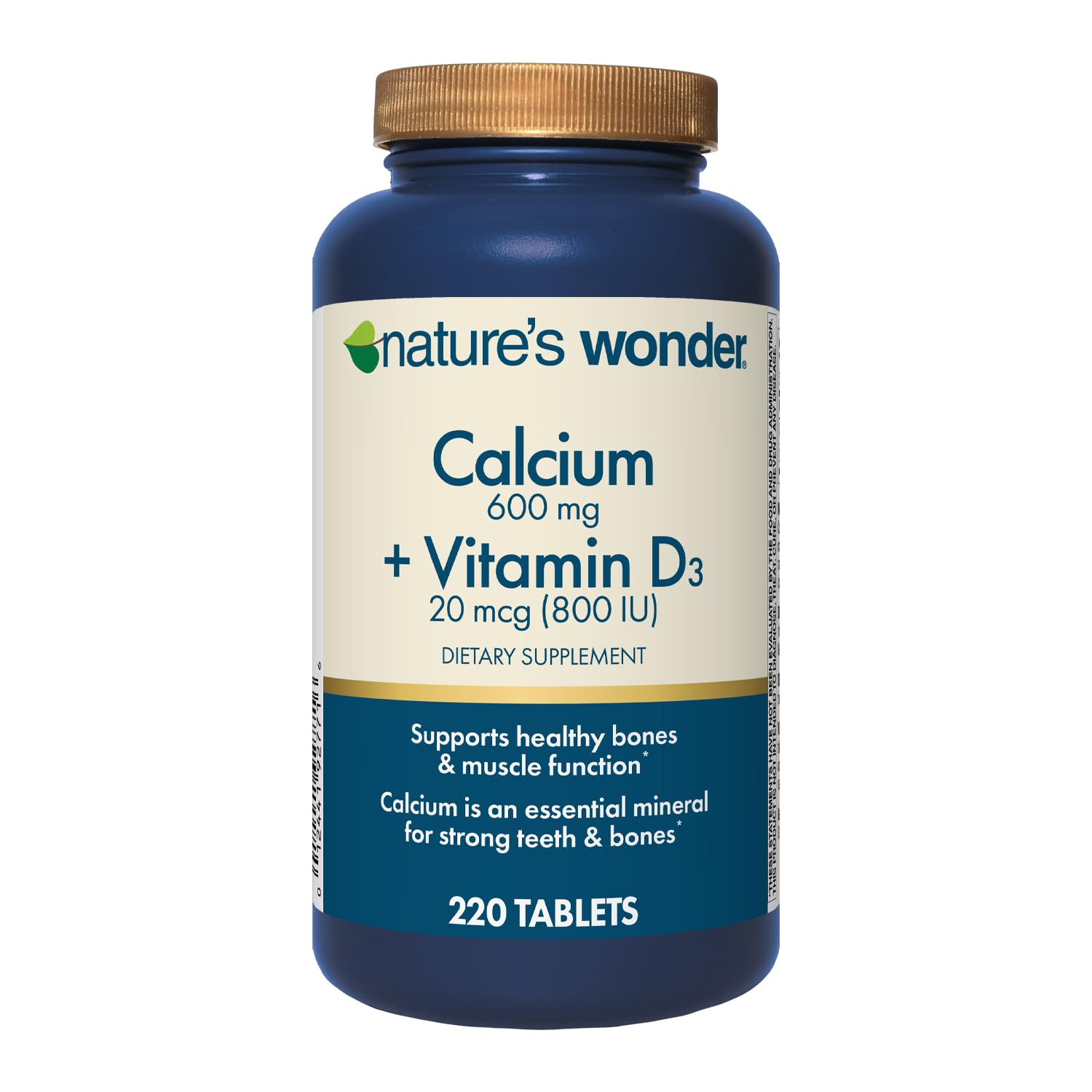 Nature's Wonder Calcium 600 mg with Vitamin D3 20 mcg for Bone Health 220 Tablets 220 Count (Pack of 1)