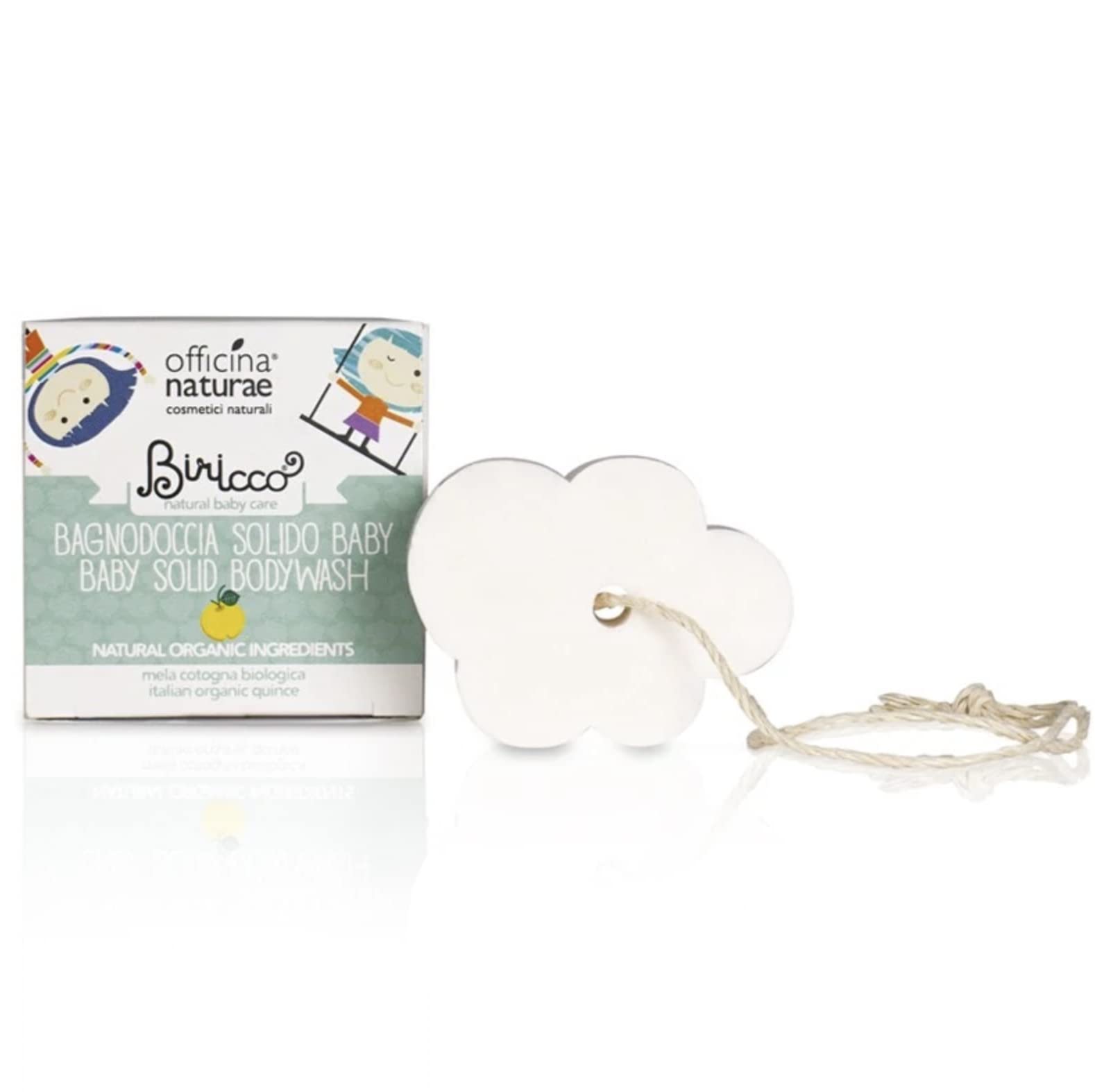 Free from plastic. Made in Italy. Organic oat extract. Marigold extract. Organic quince extract.Officina Naturae Solide douche Biricco kunststof vrij biologisch duurzaam nikkel getest Vegan 50 gVrij van kunststof. Gemaakt in Italië. Biologisch haverextract. Goudsbloem extract. Extract van biologische kweepeer.