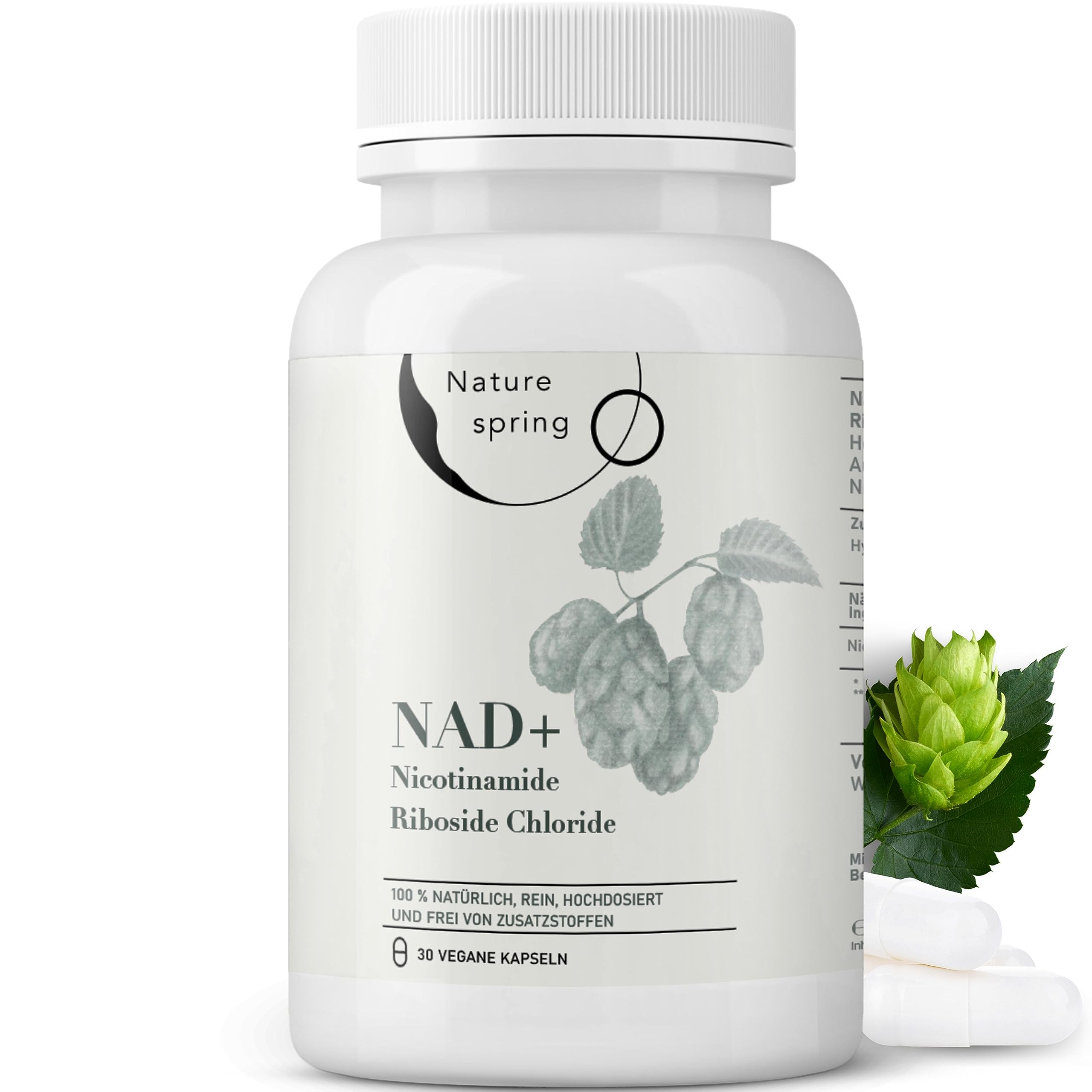 Nature spring® Nicotinamide Riboside NAD+ Kapseln 500mg für straffe und junge Haut | +1 Monat Kur | Für Anti-Aging, Haut & Energie | Vegan | Laborgeprüft in DE