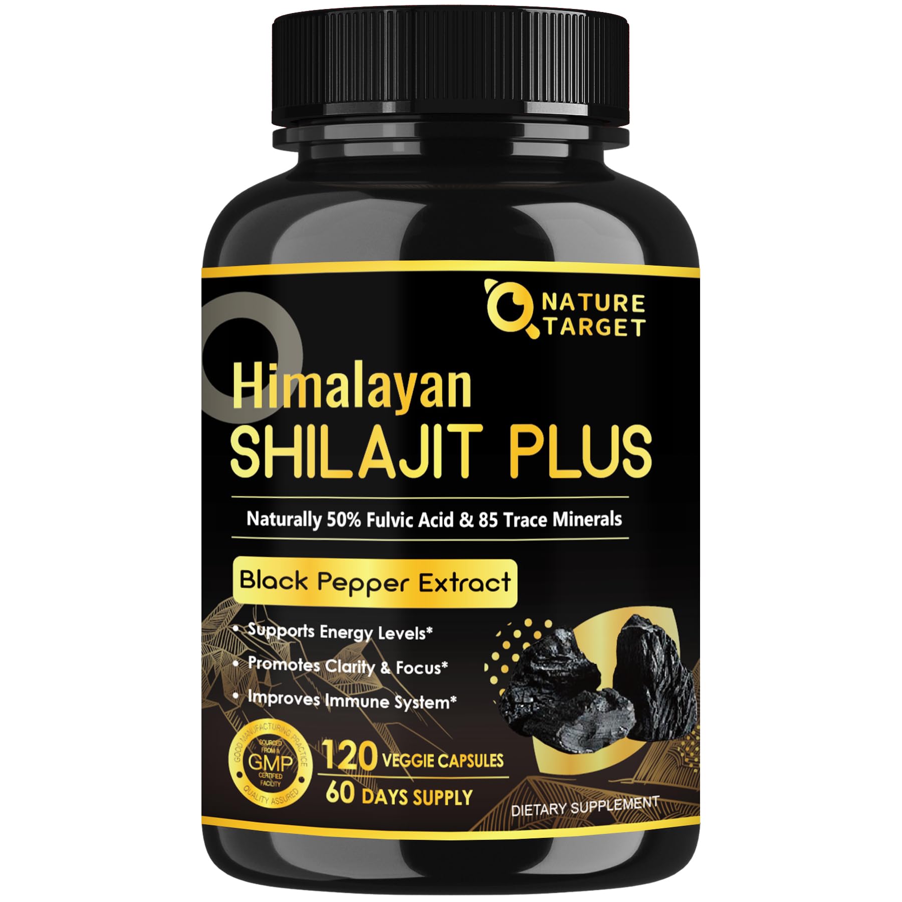 NATURE TARGET Shilajit | Shilajit for Men & Women | Fulvic Acid & Trace Minerals | 500mg Maximum Potency Better Than Shilajit Resin | 120 Capsules 120 Count (Pack of 1)