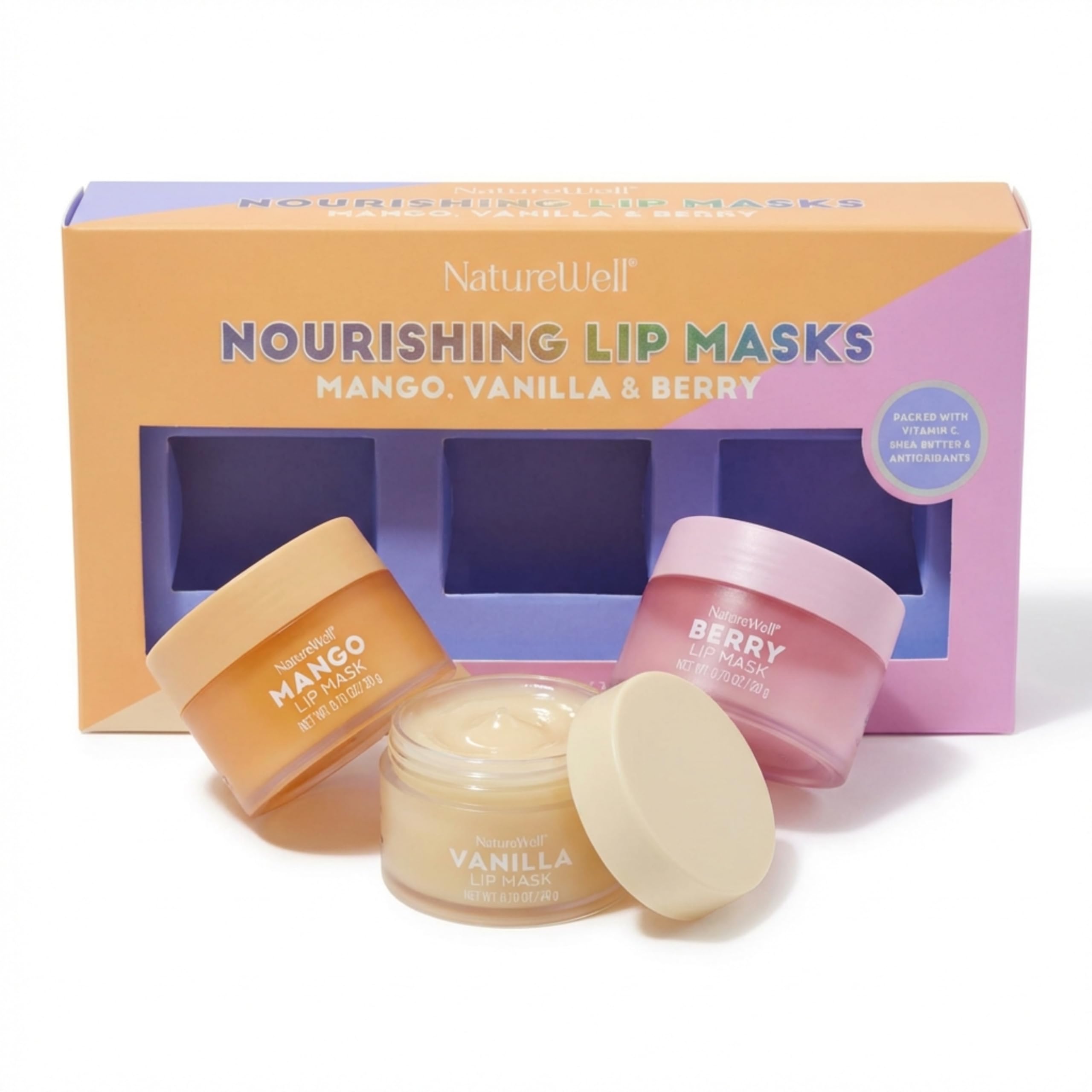 NATURE WELL Hydrating Lip Masks Variety Pack Includes Mango Vanilla & Berry Scents High-Shine Non-Greasy Conditioning & Softening 0.70 Ounce (Pack of 3)