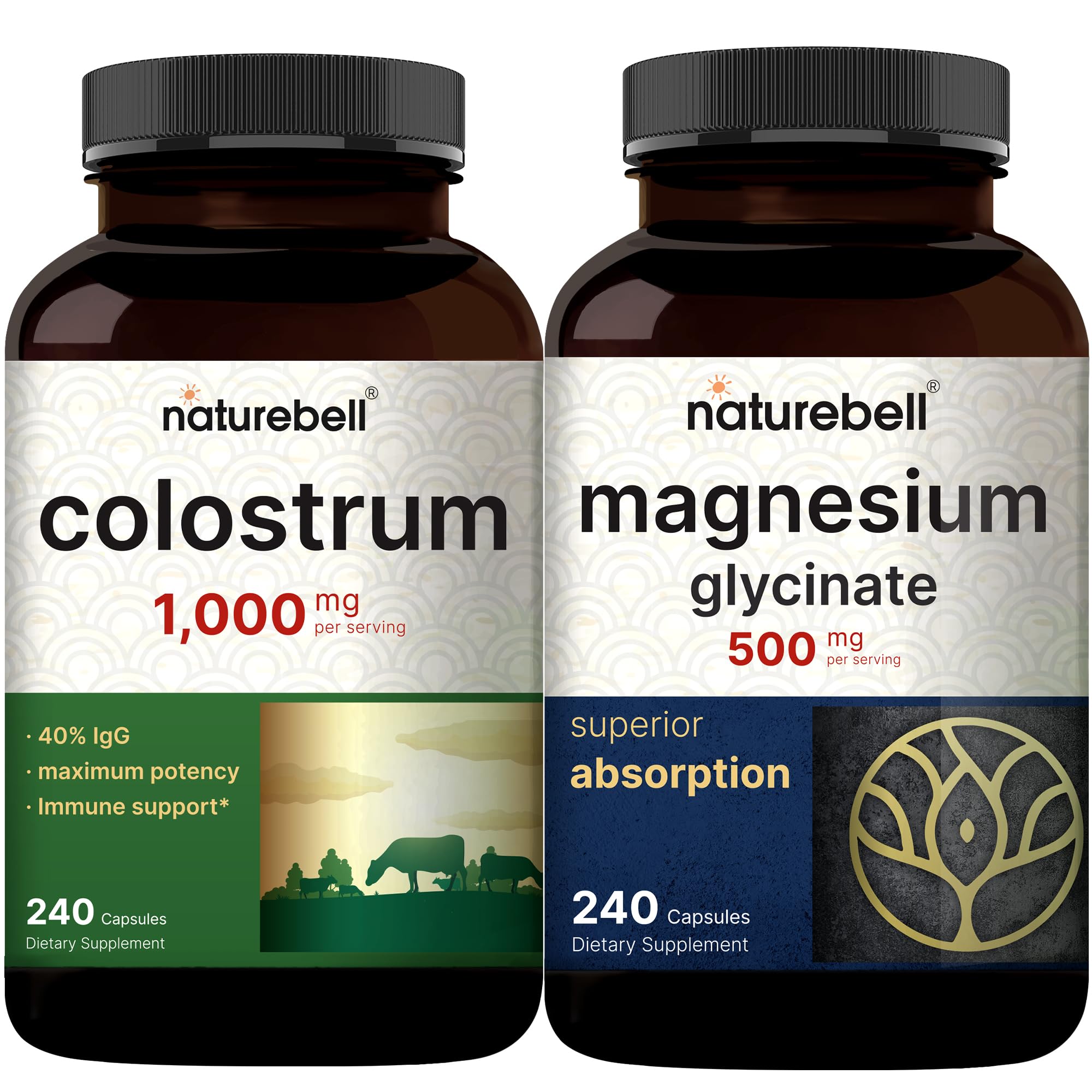 NatureBell Magnesium Glycinate Capsules 500mg & Colostrum Capsules 1,000mg Per Serving Bundle Pack | Chelated & Purified Mineral | Mother s First Milk from Grass Fed Bovine