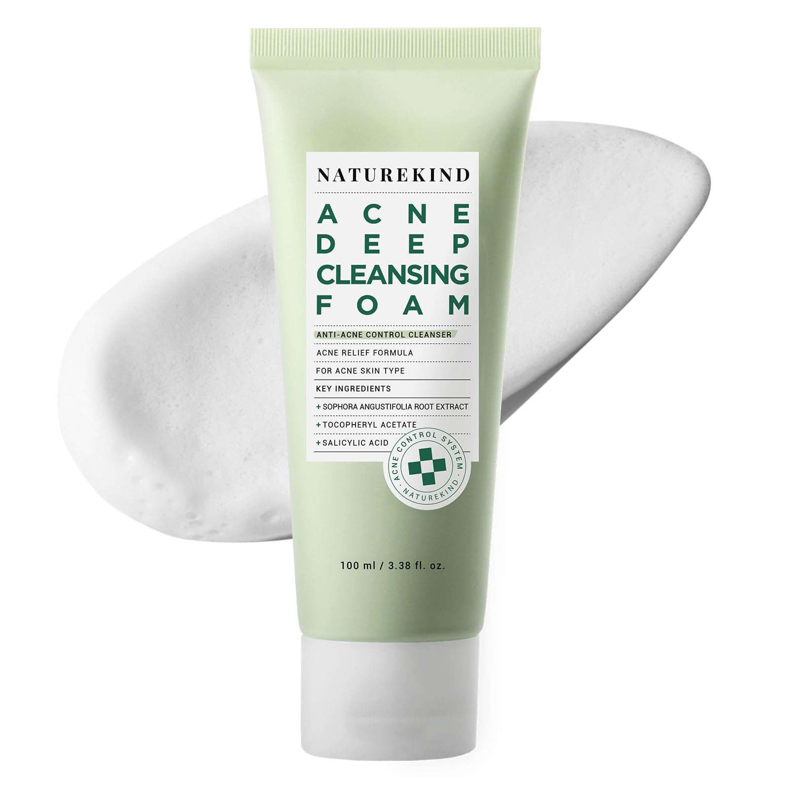 NATUREKIND Acne Deep Cleansing Foam, Formulated with Salicylic Acid for Acne Prone Skin, Daily Acne Face Wash for Removing Sebum and Dead Cells, Korean Skin Care, 100ml, 3.38 fl. oz.