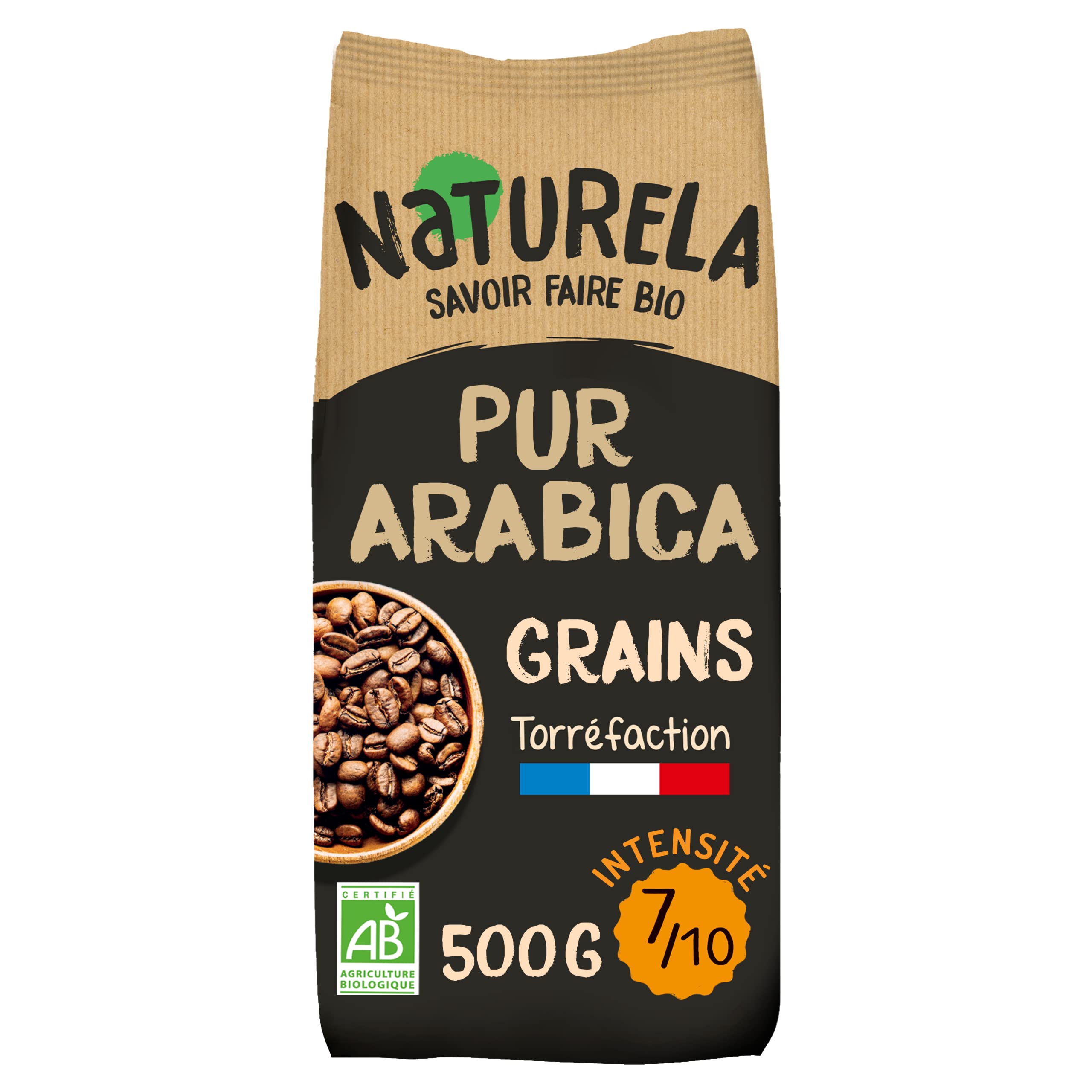 NATURELA - Café Grains Bio - Café Arabica Bio - Torréfaction Lente - Fabriqué en France - 500g Arabica - 500g
