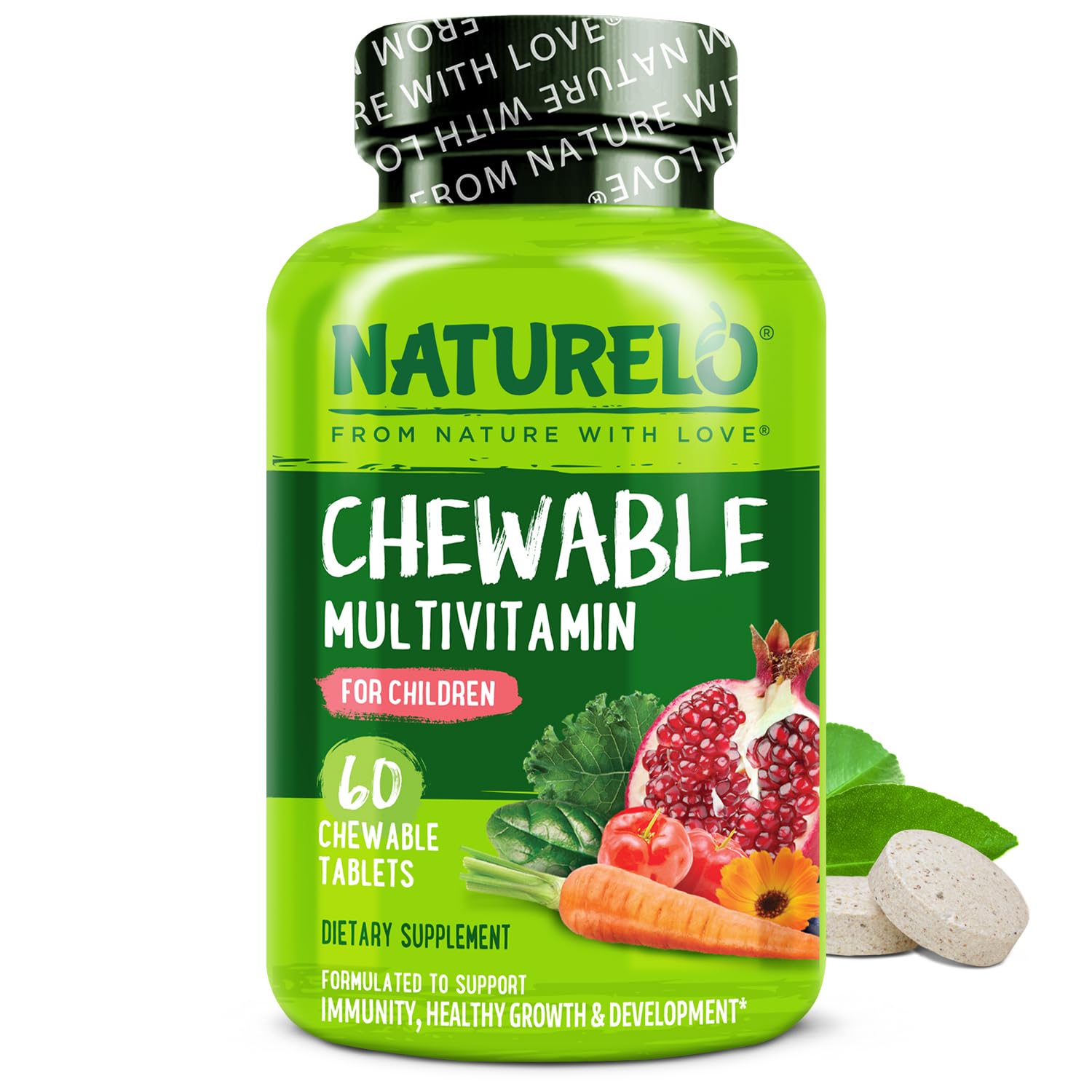 NATURELO Chewable Vitamin for Kids Multivitamin with Whole Food Organic Fruit Blend - 60 Tablets for Children 60 Count (Pack of 1)