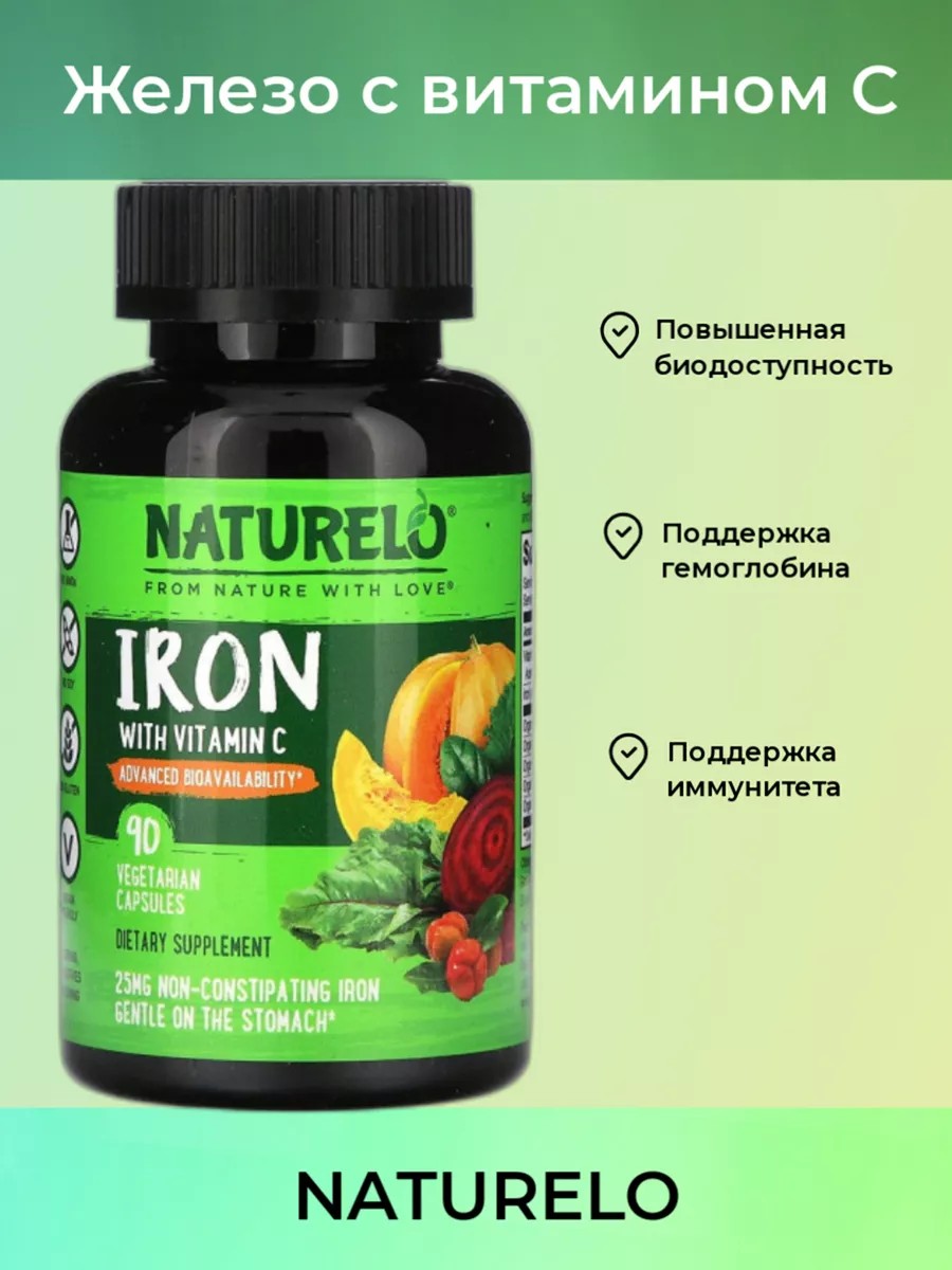 NATURELO Железо с витамином C, 90 вегетарианских капсул