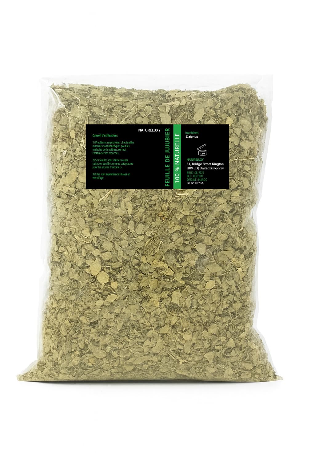 Discover the ancestral benefits of Sidr leaves (Jujube) with Natureluxy. From the Eastern tradition, they are known for their purifying, strengthening and calming properties. In hair care, they are used to strengthen hair, combat hair loss and restore shine. As skin care, they help to naturally purify, soothe and soften the epidermis. In traditional use, sidr leaves are also used for their spiritual and cleansing properties. Packaged in a 1kg bag, they offer a practical and economical format for regular use in your beauty and wellness rituals.Natureluxy Sidr (Jujube) bladeren, 100 natuurlijk, haar- en huidverzorging, traditioneel gebruik en welzijn, 1 kg Ontdek de voorouderlijke voordelen van Sidr-bladeren (Jujube) met Natureluxy. Uit de oosterse traditie staan ze bekend om hun zuiverende, versterkende en kalmerende eigenschappen. Bij haarverzorging worden ze gebruikt om het haar te versterken, haaruitval te bestrijden en de glans te herstellen. Als huidverzorging helpen ze de opperhuid op natuurlijke wijze te zuiveren, kalmeren en verzachten. Bij traditioneel gebruik worden sidr-bladeren ook gebruikt voor hun spirituele en reinigende eigenschappen. Verpakt in een zak van 1 kg bieden ze een praktisch en voordelig formaat voor regelmatig gebruik bij je schoonheids- en wellnessrituelen.