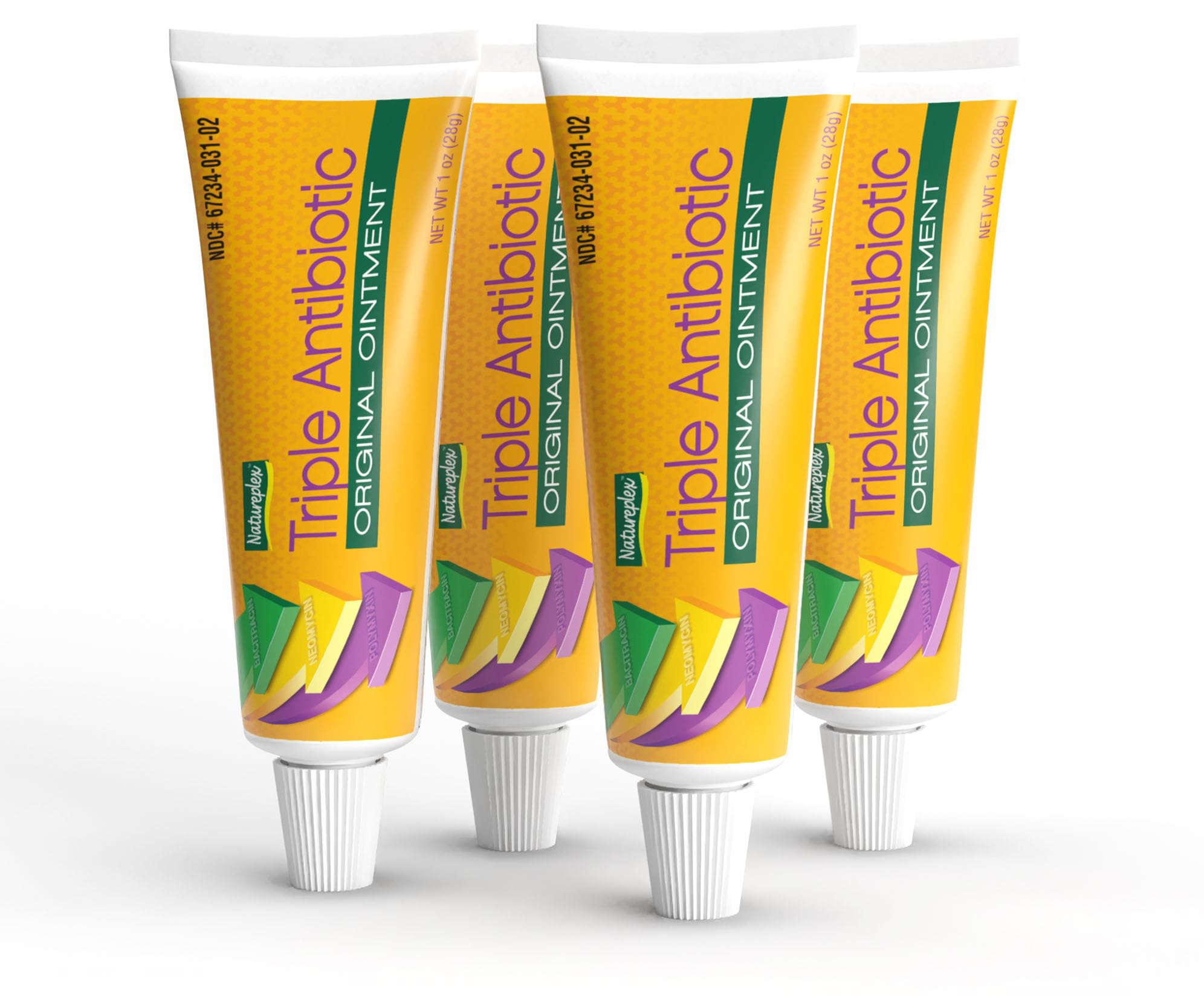 Natureplex Triple Antibiotic Ointment 1.0 oz (Pack of 4) is a compact and convenient addition to any first aid kit. Each tube contains a blend of Bacitracin Zinc, Neomycin Sulfate, and Polymyxin B Sulfate, commonly used for basic wound care and minor skin irritations. Perfect for addressing small cuts, scrapes, burns, and abrasions, this topical ointment is designed for external use and is easy to apply. The small, travel-friendly tubes fit into purses, backpacks, glove compartments, emergency kits, and more—ideal for home, school, office, or on the go. This pack of 4 individually sealed tubes ensures you'll have plenty of supply to keep around or distribute where needed. The ointment creates a layer over the skin to help protect and support normal skin recovery. It's suitable for a variety of minor skincare needs and everyday mishaps. Whether you're restocking your first aid supplies, preparing emergency gear, or simply looking for a practical solution for minor skin needs, this triple antibiotic ointment offers a reliable, affordable option. Made in the USA, Natureplex products are produced with attention to quality and consistency, making them a smart choice for personal or professional use.