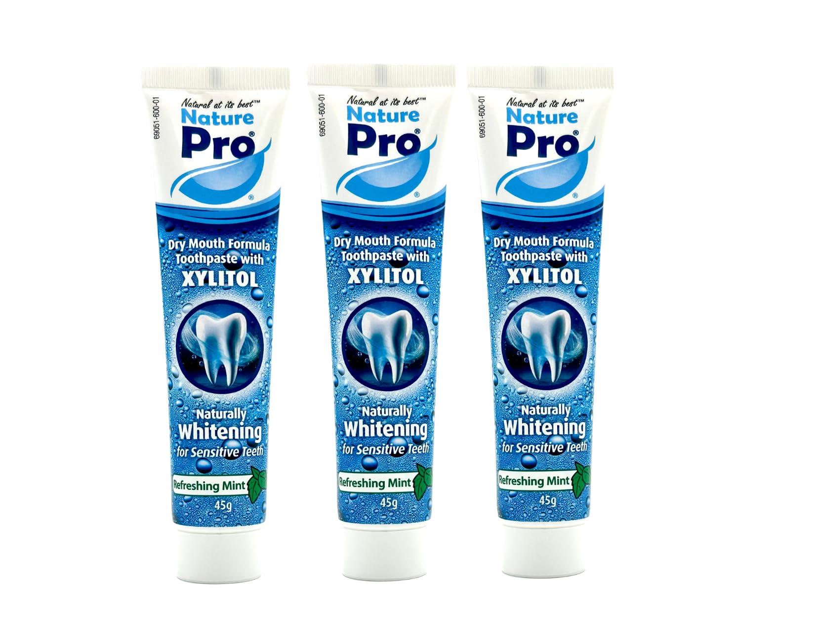 NaturePro Dry Mouth Toothpaste Xylitol Whitening Formula Sensitive Teeth Refreshing Mint 3 Pack (45g Each)