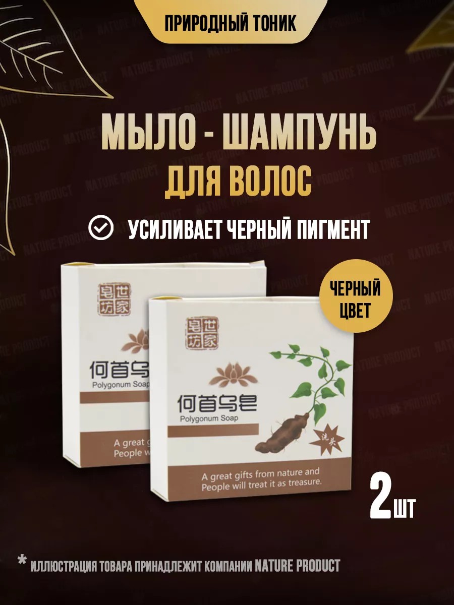 NatureProduct Твердое мыло шампунь для окрашивания волос черный цвет 2 шт