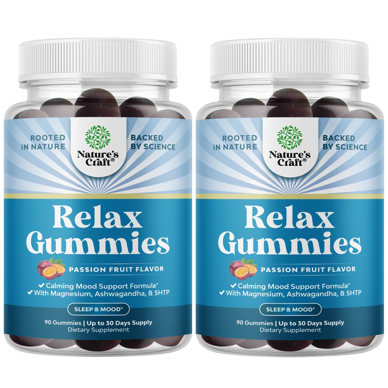 Natures Craft Calming Gummies for Adults with Ashwagandha and Magnesium - Relaxing Stress Gummies with L Theanine 5HTP and Lemon Balm Extract - Adaptogenic Chamomile Extract Vitamin B6 2 Pack 90 Count (Pack of 2)