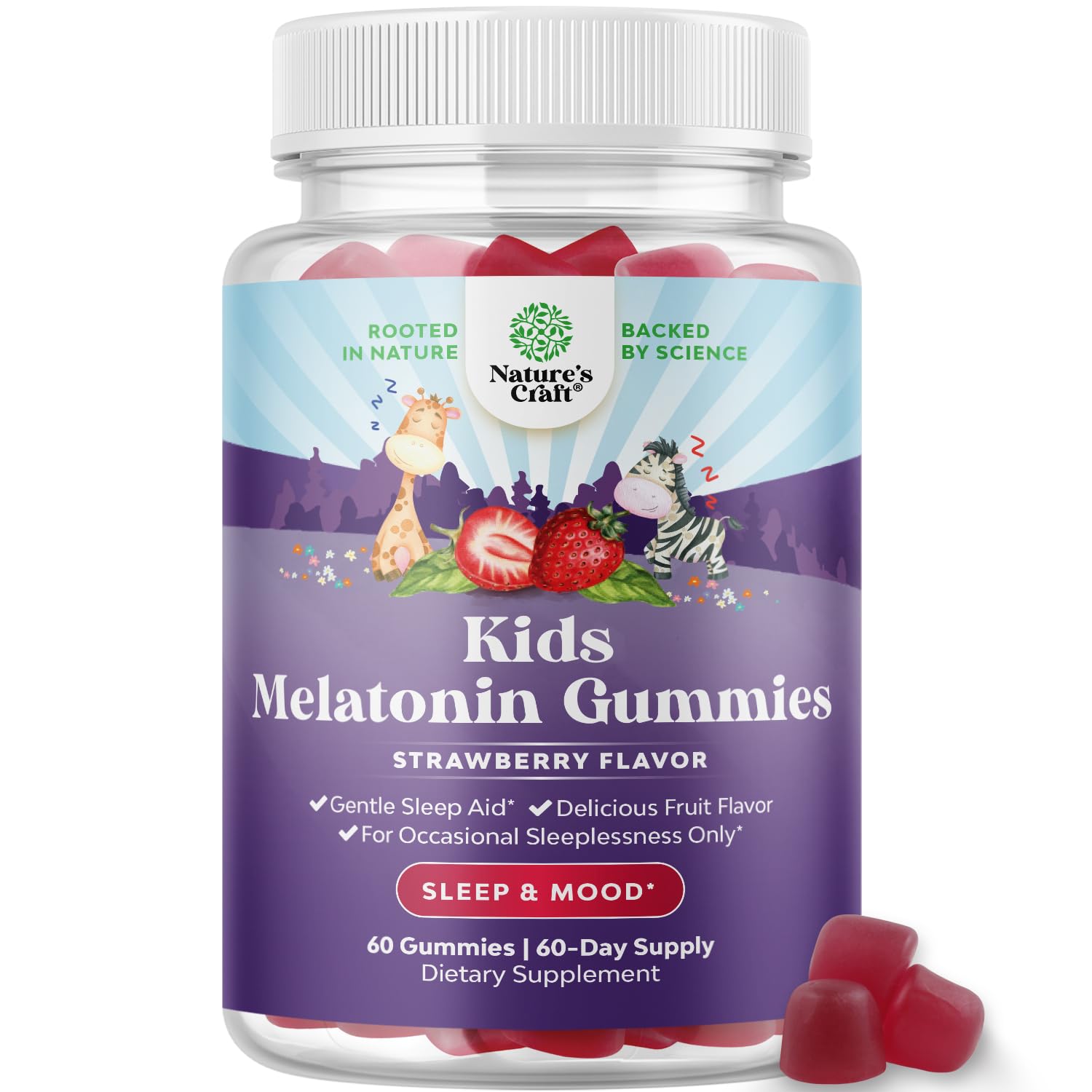 Natures Craft Melatonin Gummies for Kids Sleep Support - Hassle-Free Kids Melatonin Gummies for Mood Support - Delicious and Tummy Friendly Gummy 1 Mg Little Ones - 60 Count Kids Gummies 60 Count (Pack of 1)
