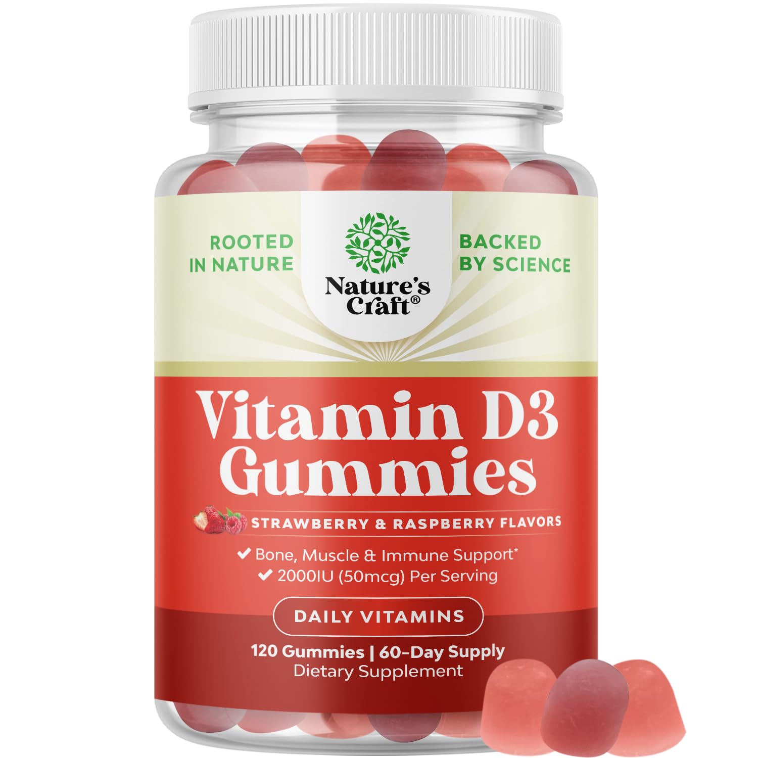 Natures Craft Vitamin D Gummies for Adults - Daily Immune Support Gummies with Vegan Vitamin D3 2000IU - D3 for Adults Wellness Non GMO Gluten Free 2 Month Supply 120 Count (Pack of 1)