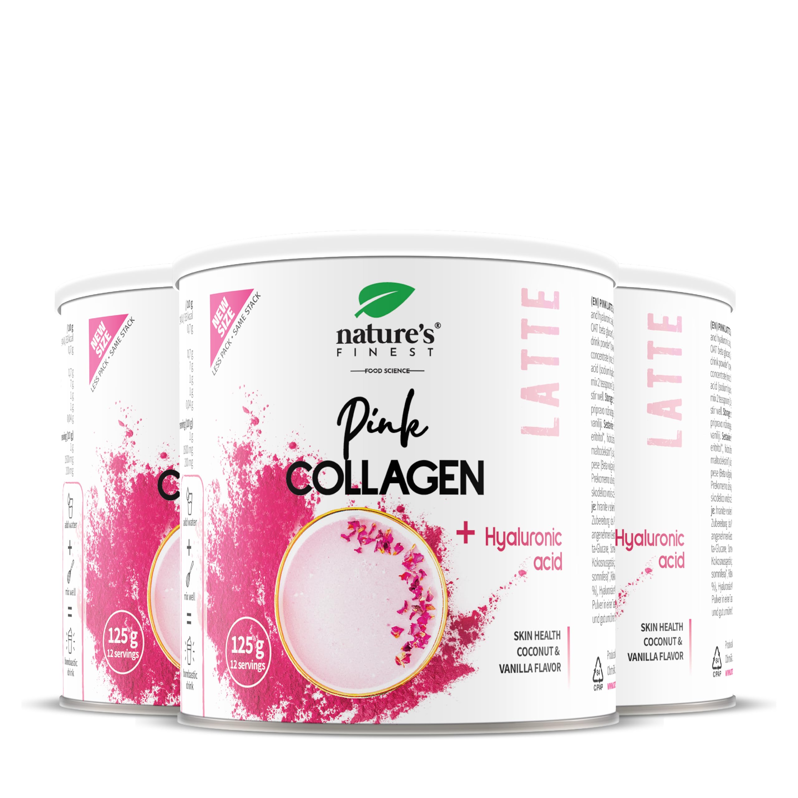 Natures Finest from Nutrisslim Pink Latte with collagen and hyaluronic acid 125 g Coconut and vanilla flavored drink lactose and sugar free