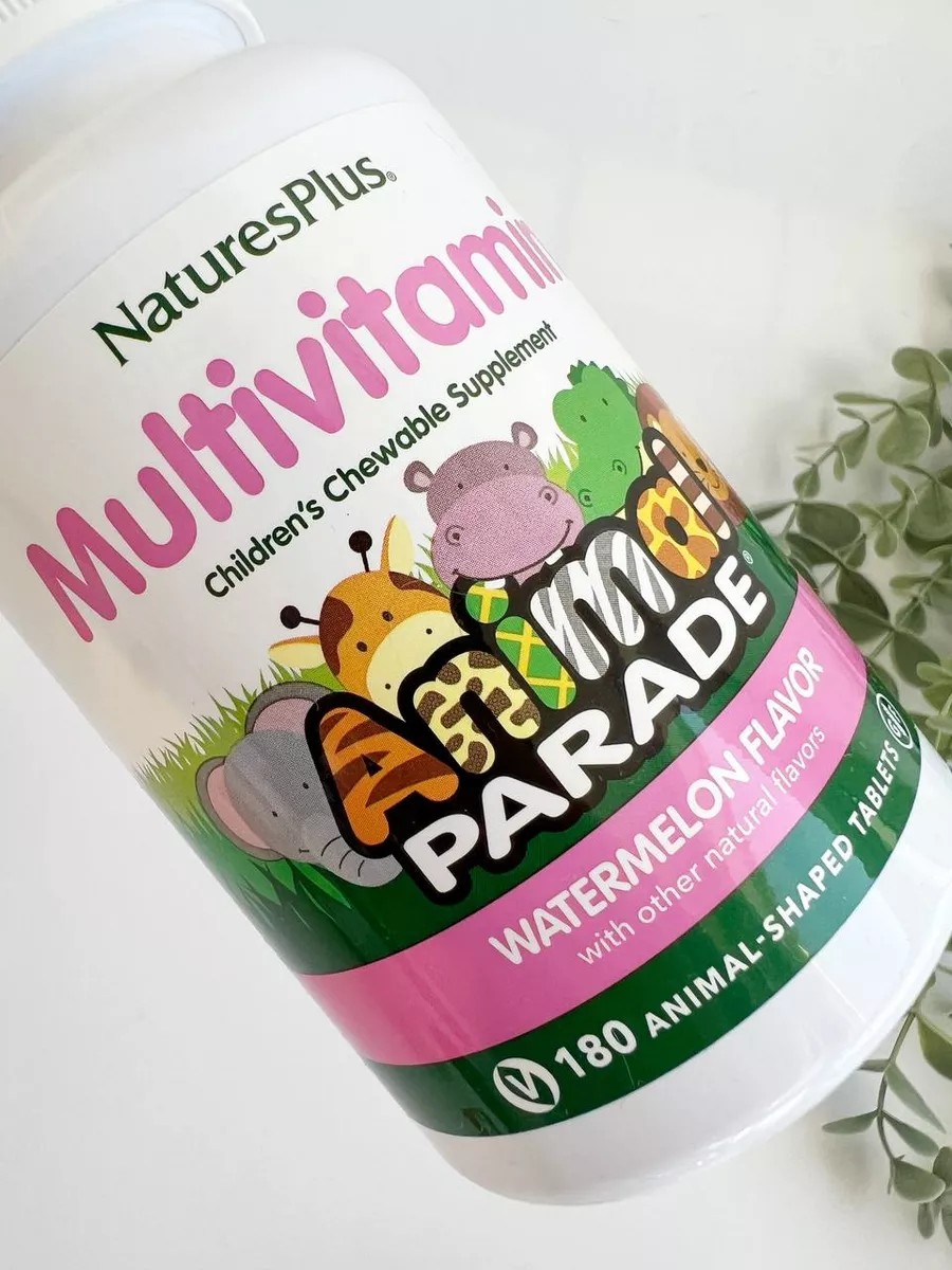 *Nature's Plus, Source of Life, Animal Parade, Children's Chewable Multivitamin with Micronutrients, Assorted, 180 Animal-Shaped Tablets. Nature's Plus Animal Parade is a multivitamin disguised in fun, animal-shaped tablets. The best vitamins for kids of every age. Includes over 20 natural whole foods, like broccoli and spinach. Includes 400 IU of vitamin D3 plus some of the best probiotics for kids. Supports a healthy immune system. Contains the sweetener xylitol, which may reduce the risk of tooth decay. Supports normal growth and development. Nutrients in kid-sized amounts to support health. Suggested Use: Children chew two tablets daily. Intended for children from the age when they can safely chew.