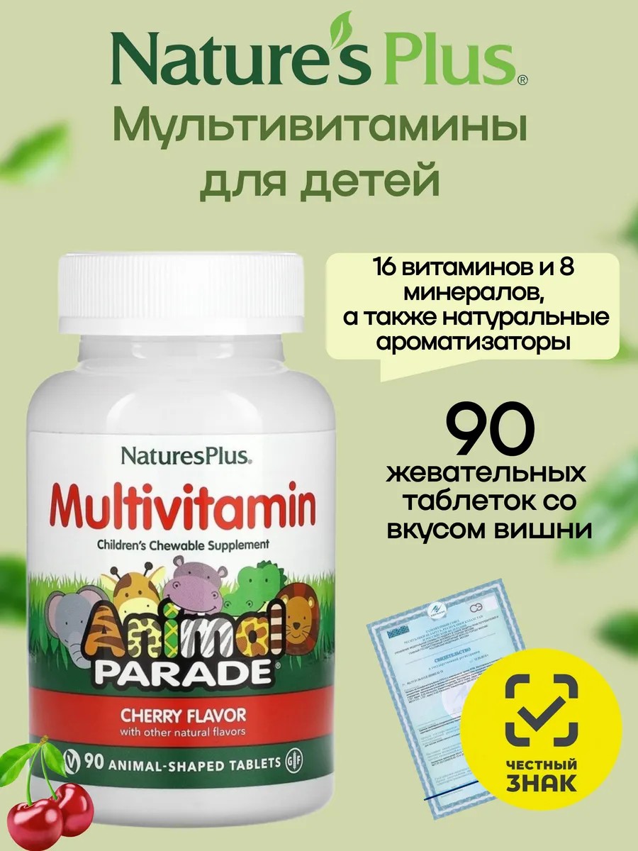 Animal Parade, Мультивитамины для детей (вишня), 90 таблеток