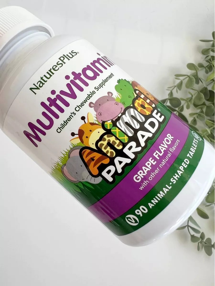 *Nature's Plus, Source of Life, Animal Parade, Children's Chewable Multivitamin with Micronutrients, Orange, 90 Animal-Shaped Tablets. Nature's Plus Animal Parade is a multivitamin disguised in fun, animal-shaped tablets. The best vitamins for kids of every age. Includes over 20 natural whole foods, like broccoli and spinach. Includes 400 IU of vitamin D3 plus some of the best probiotics for kids. Supports a healthy immune system. Contains the sweetener xylitol, which may reduce the risk of tooth decay. Supports normal growth and development. Nutrients in child-sized amounts to support health. Suggested Use: Children chew two tablets daily. Intended for children from the age when they can safely chew.