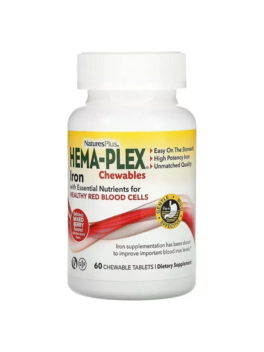 Natures Plus Железо Hema Plex Хелатное железо, 60 жевательных таблеток