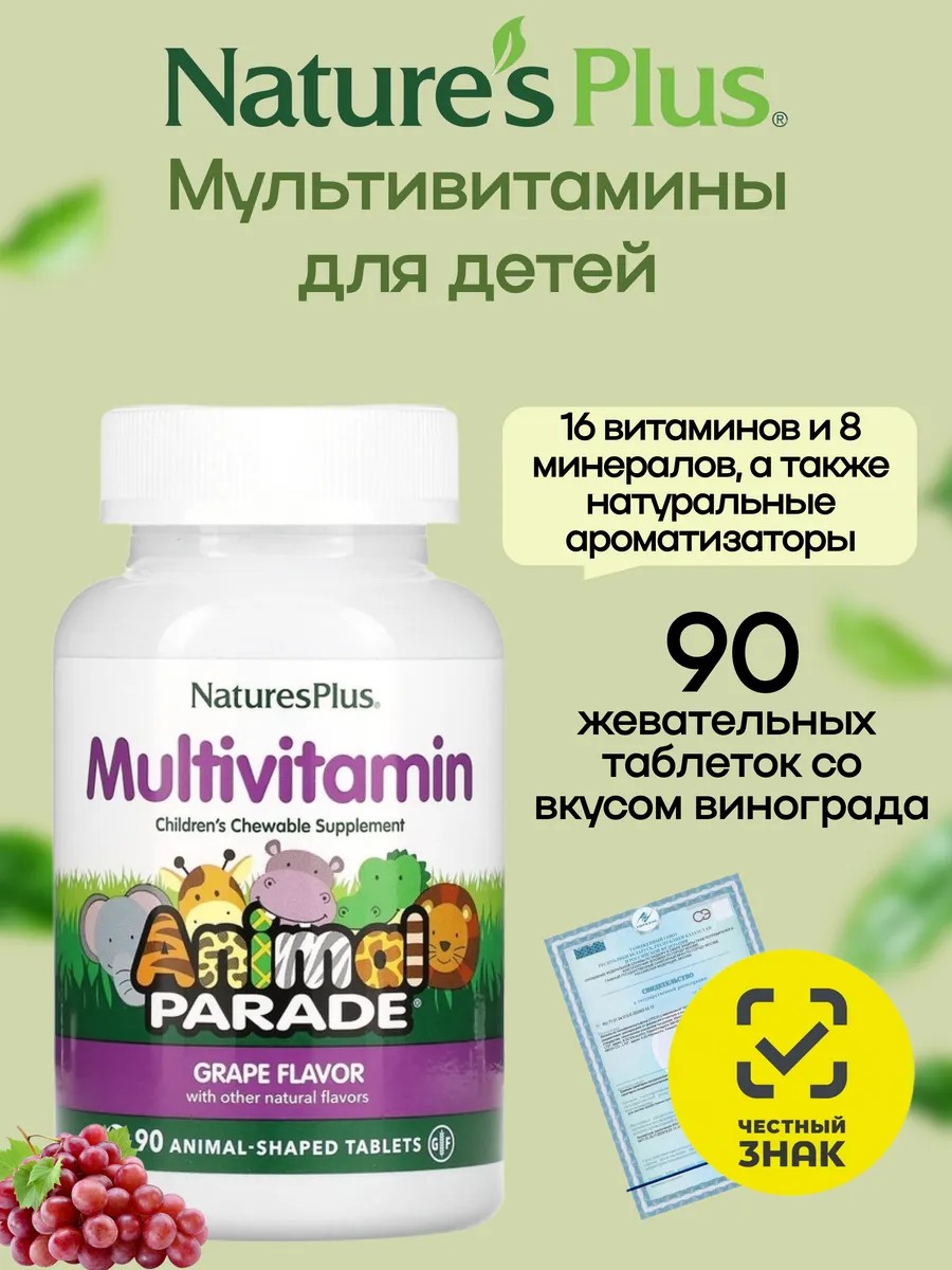 Мультивитамины детские Animal Parade, виноград 90 таблеток