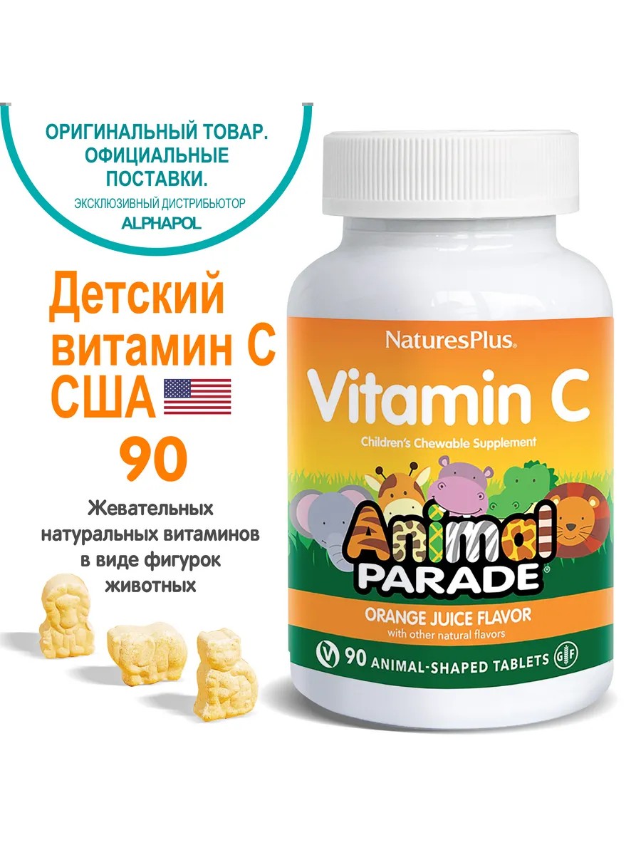Жевательные витамины для детей с витамином С от Animal PARADE в форме забавных животных. Витамины для школьников Animal Parade. Детские витамины содержат специальную детскую формулу витамина С (250 мг) и комплекса биофлавоноидов (50 мг), а также экстракты виноградных косточек и черники в удобном для детей количестве.