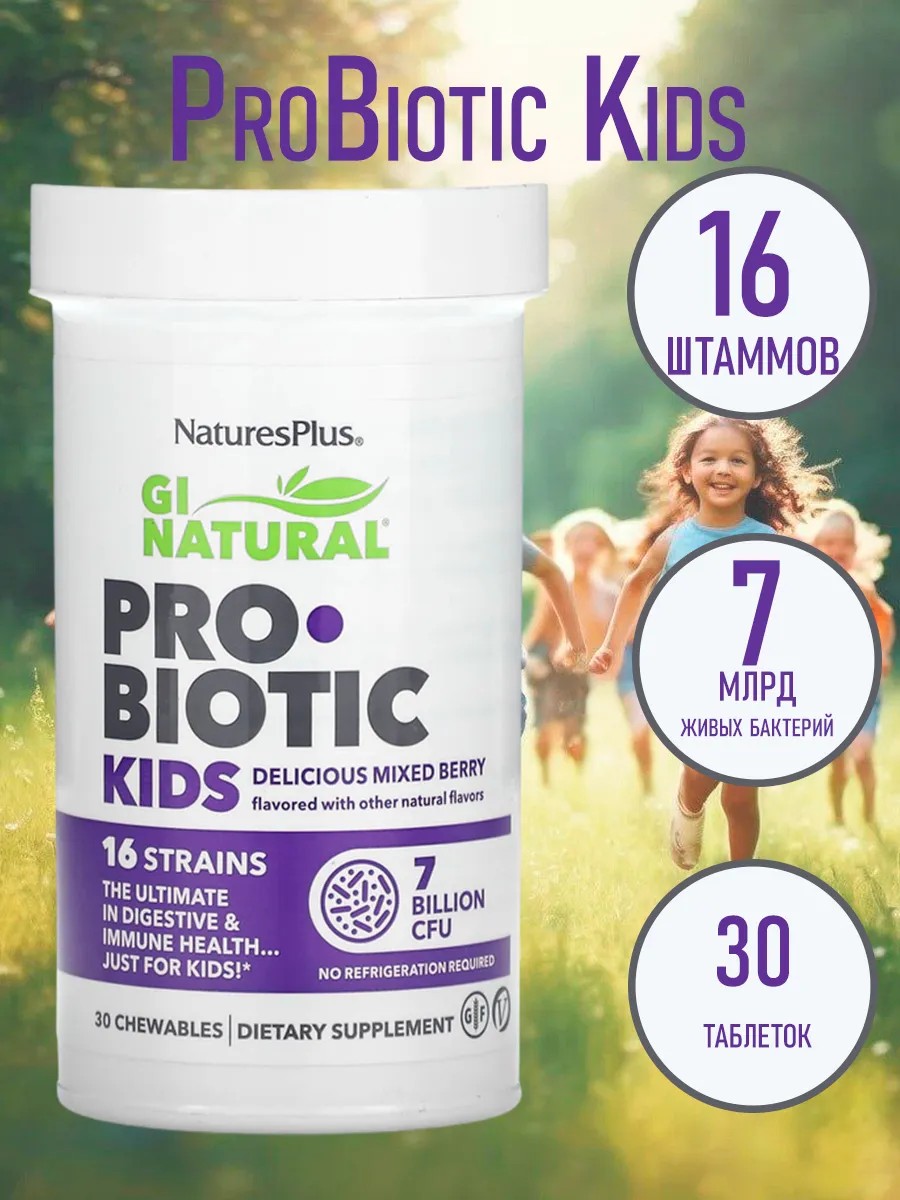 NaturesPlus ProBiotic Kids — это пробиотическая добавка, разработанная специально для детей. Пробиотики — это живые микроорганизмы, которые могут приносить пользу здоровью, особенно для пищеварительной системы и иммунной функции. NaturesPlus ProBiotic Kids содержит различные штаммы пробиотиков, такие как Lactobacillus и Bifidobacterium, которые поддерживают здоровье кишечника и помогают в переваривании пищи. Добавка доступна в форме жевательных таблеток, что делает её удобной для детей.