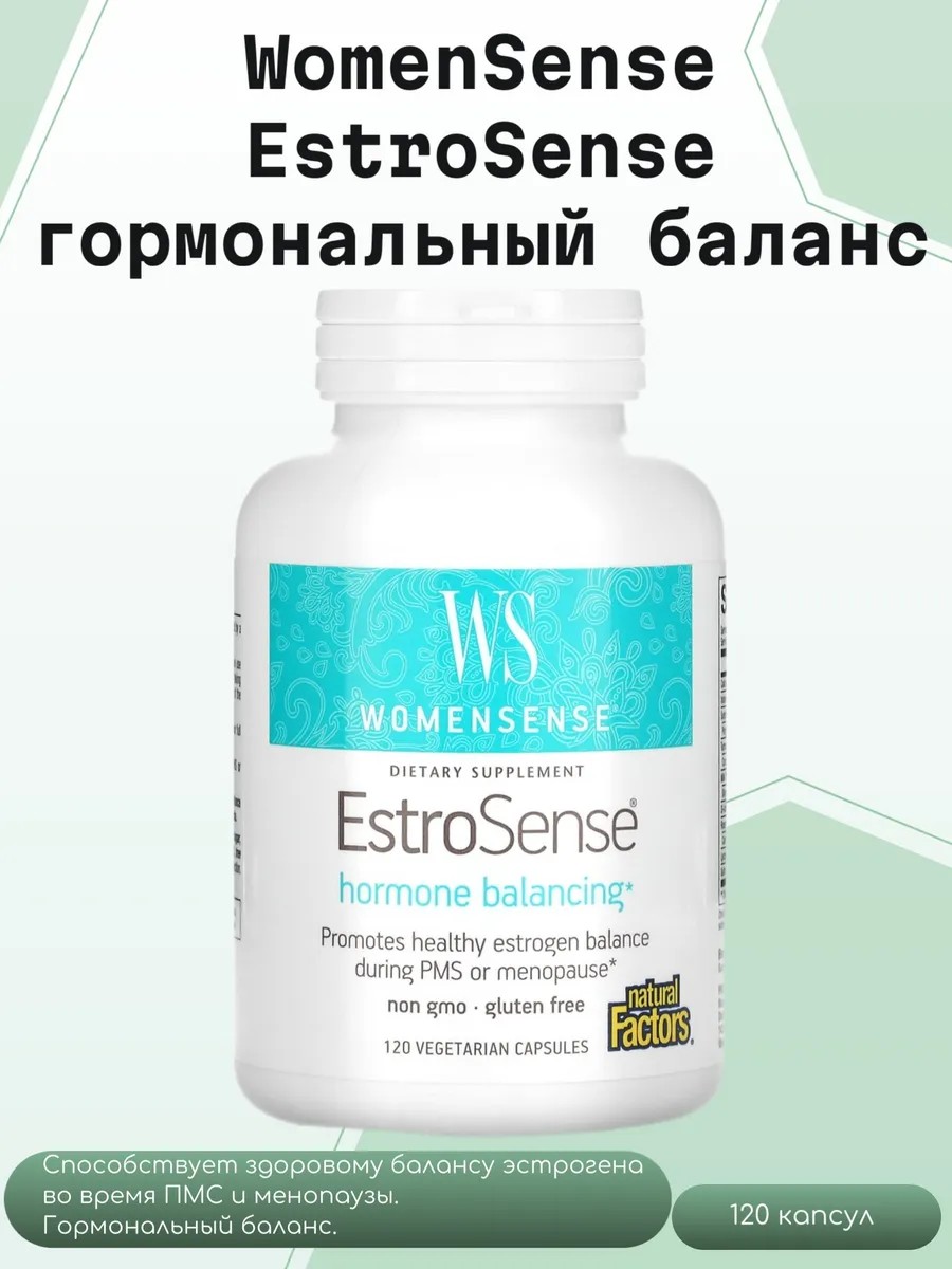 WomenSense — это серия продуктов для женщин, предназначенная для поддержки здоровья на самом высоком уровне. EstroSense разработан для поддержания естественного гормонального баланса во время ПМС и менопаузы, а также здорового метаболизма эстрогенов. EstroSense поможет вывести метаболиты эстрогенов и нормализовать гормональный фон женщины. Средство положительно влияет на все состояние. Снимает излишнюю нервозность, спасает от стрессов, успокаивает. Улучшает качество кожи, волос, тела, суставов. Способствует клеточной регенерации. Капсулы небольшого размера желтого цвета. Принимать 2 капсулы 1–2 раза в день во время еды или в соответствии с рекомендациями врача.