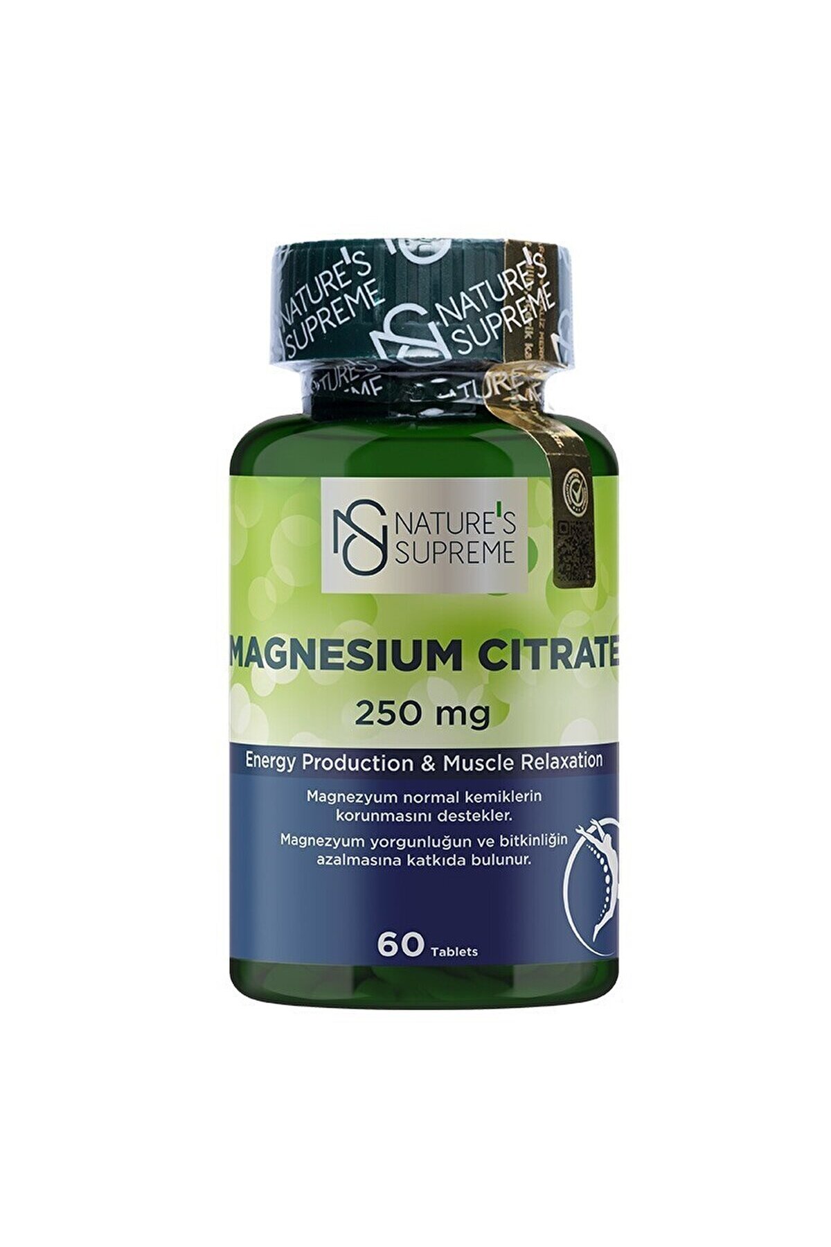 Nature's Supreme Magnesium Citrate 250 Mg 60 Tablet Pozitif YorumlarEmilimi yüksek sitrat form magnezyum,Patentli ham madde olmasi,Yogun antrenman yapanlardan gelen olumlu geribildirimler