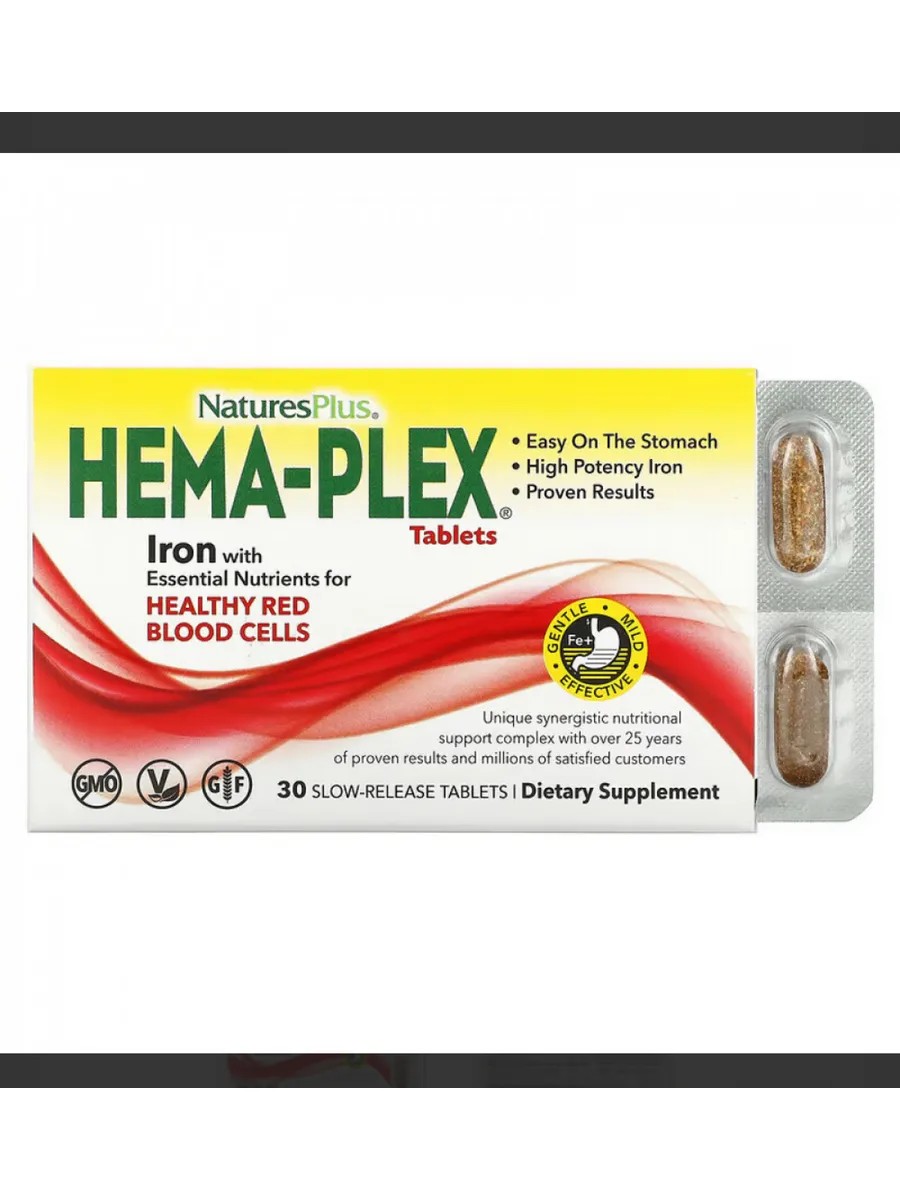 Nature's Plus Hema-Plex, a multivitamin and mineral complex, is an advanced formula designed to provide the body with the vitamins and minerals needed to maintain normal blood glucose and hemoglobin levels and improve overall blood health.