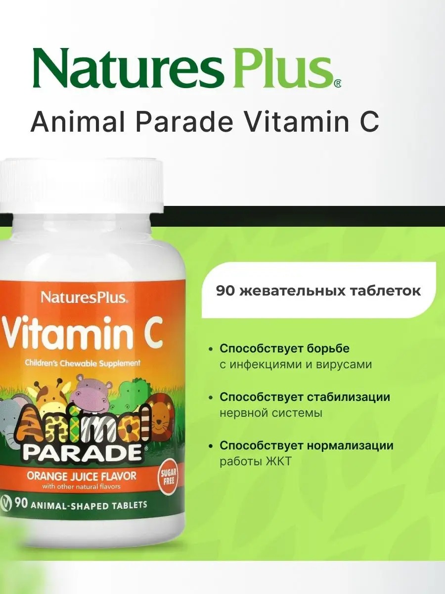 Nature’s Plus Vitamin C Animal Parade– это биологически активная добавка растительного происхождения без аллергенов, сои, пшеницы, ГМО, искусственных добавок.