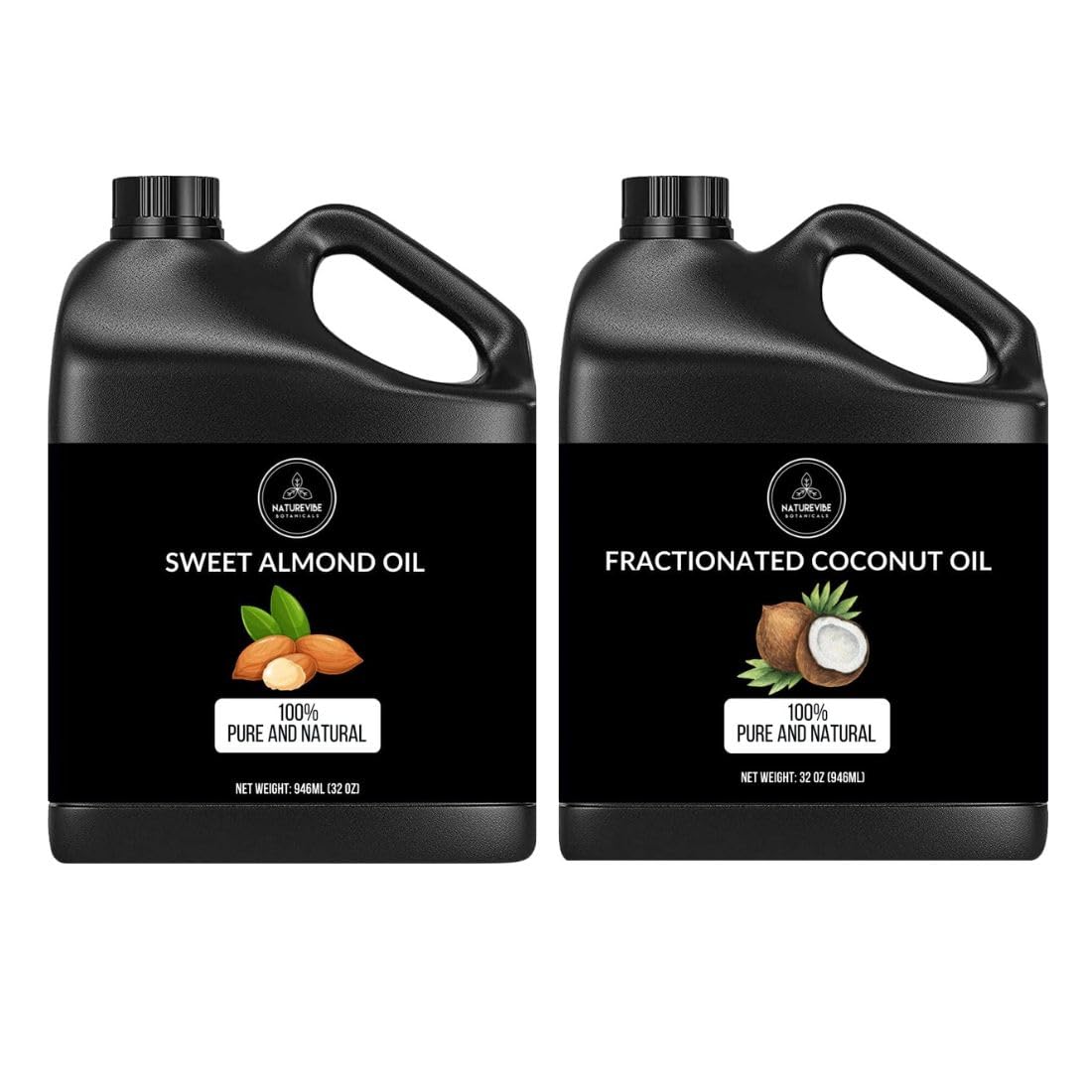 Naturevibe Botanicals Sweet Almond Oil 32oz and Fractionated Coconut Oil 32oz |Oil Combo
