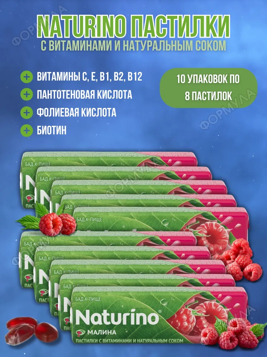 NATURINO Натурино пастилки малина с витаминами и соком 10шт