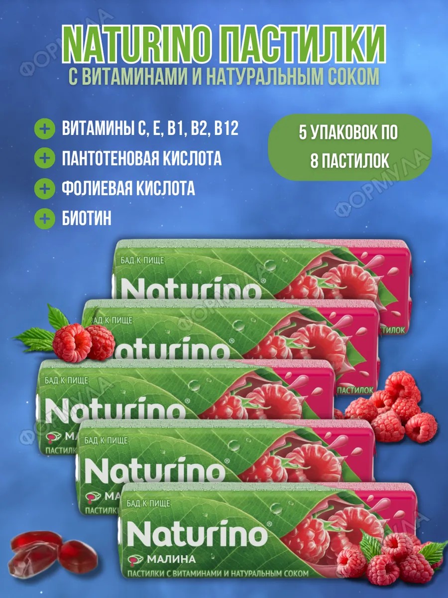 NATURINO Натурино пастилки малина с витаминами и соком 5шт