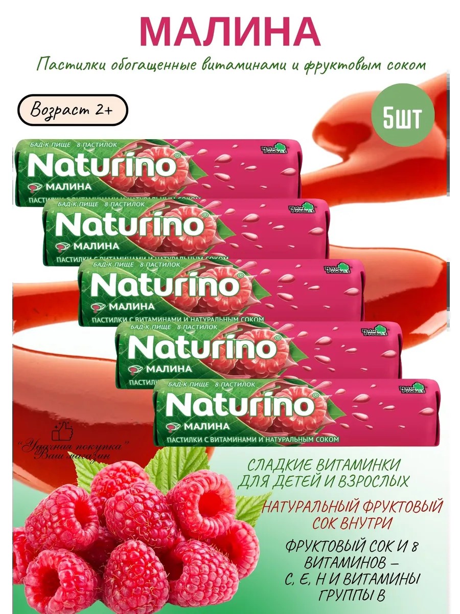 NATURINO Пастилки Малина с витаминами и соком 5уп