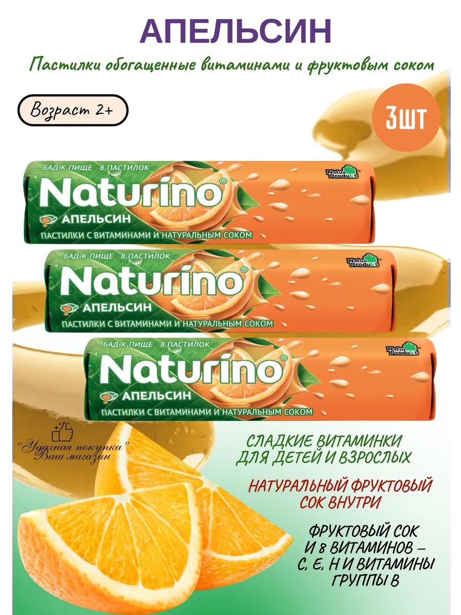 Натурино — это биологически активная добавка к пище, при производстве которой не используются консерванты, ГМО. Эти пастилки предназначены детям от 2-х лет и взрослым, которые стремятся восполнить суточную потребность организма в витаминах и микроэлементах. Натурино имеет в своем составе фруктовый сок и 8 витаминов — С, Е и группы В. Обогащая рацион, эти витамины оказывают благотворное влияние на развитие организма вашего ребенка.