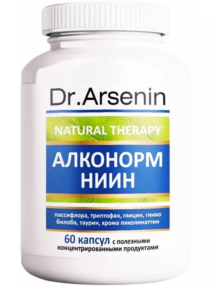 Доктор Арсенин Натуротерапия. Корректирует нарушения, связанные с негативным воздействием этиловых альдегидов. Янтарная кислота, входящая в состав, восстанавливает кислотно-щелочной баланс крови, нормализуя работу головного мозга. Корректирует нарушения, связанные с негативным воздействием этиловых альдегидов. Янтарная кислота, входящая в состав, восстанавливает кислотно-щелочной баланс крови, нормализуя работу головного мозга. Хрома пиколинат нормализует работу сердечно-сосудистой системы, восстанавливая нормальный тонус сосудистой стенки и частоту сердечных сокращений. L-глицин, L-триптофан, L-орнитин, L-глутамин, L-аргинин, L-цистеин являются нейромедиаторами и поддерживают работу головного мозга и всех органов и систем организма, деятельность которых была нарушена при алкогольном отравлении. Экстракт пассифлоры и 5НТР воздействуют на кору головного мозга, на центр удовольствия и значительно снижают тягу к употреблению алкоголя. Зверобой обладает антидепрессантным действием, нормализует настроение и сон. Пантотенат Кальция связывают и обезвреживают токсические метаболиты, переводя их в малоактивные (менее вредные) вещества. Экстракт корня лопуха и солодки проявляют выраженное детоксическое действие, выводят альдегиды, которые накапливаются в организме при употреблении алкоголя. Экстракт расторопши и Экстракт артишока восстанавливают функцию печени, которая страдает при употреблении алкоголя в первую очередь. ЭФФЕКТЫ: Коррекция обменных процессов в крови при нарушениях, которые возникли на фоне отравления. Восстановление кислотно-щелочного баланса кровяной жидкости. Нормализация функций головного мозга. Стимуляция деятельности печенки. Ускорение процесса распада альдегида и его обезвреживание. Нормализация работы сердца и восстановление частоты ритма ударов. Усиление функций кровеносной системы. Нормализация тонуса сосудов. Выведение токсичных остатков. Нормализация водного баланса. Улучшение функциональных способностей дыхания, сердца, мозга и кровеносной системы при отравлениях. Устранение раздражений в ЖКТ. Вымывание остаточных явлений из всех тканей и органов. Особенности действия: Концентрат в первую очередь воздействует на кровь, головной мозг и печень. Потому что именно кровь быстрее всего распространяет по всем органам токсичные вещества, печень накапливает их. Удивительно, но экстракты растений способствуют быстрому распаду отравляющих веществ, вплоть до полноценного их обезвреживания. Это позволяет защитить печенку от негативного их влияния. Также способствует усилению работы выделительной системы в почках, что приводит к быстрейшему выводу токсинов. В каких случаях применяется комплекс: Отравление этиловым альдегидом. Похмельный синдром. Отравление алкоголем. Токсичные отравления. Рекомендации по применению: по 1 капсуле 2 раз в день (утром и вечером, за 30 мин до или через 2 часа после еды).