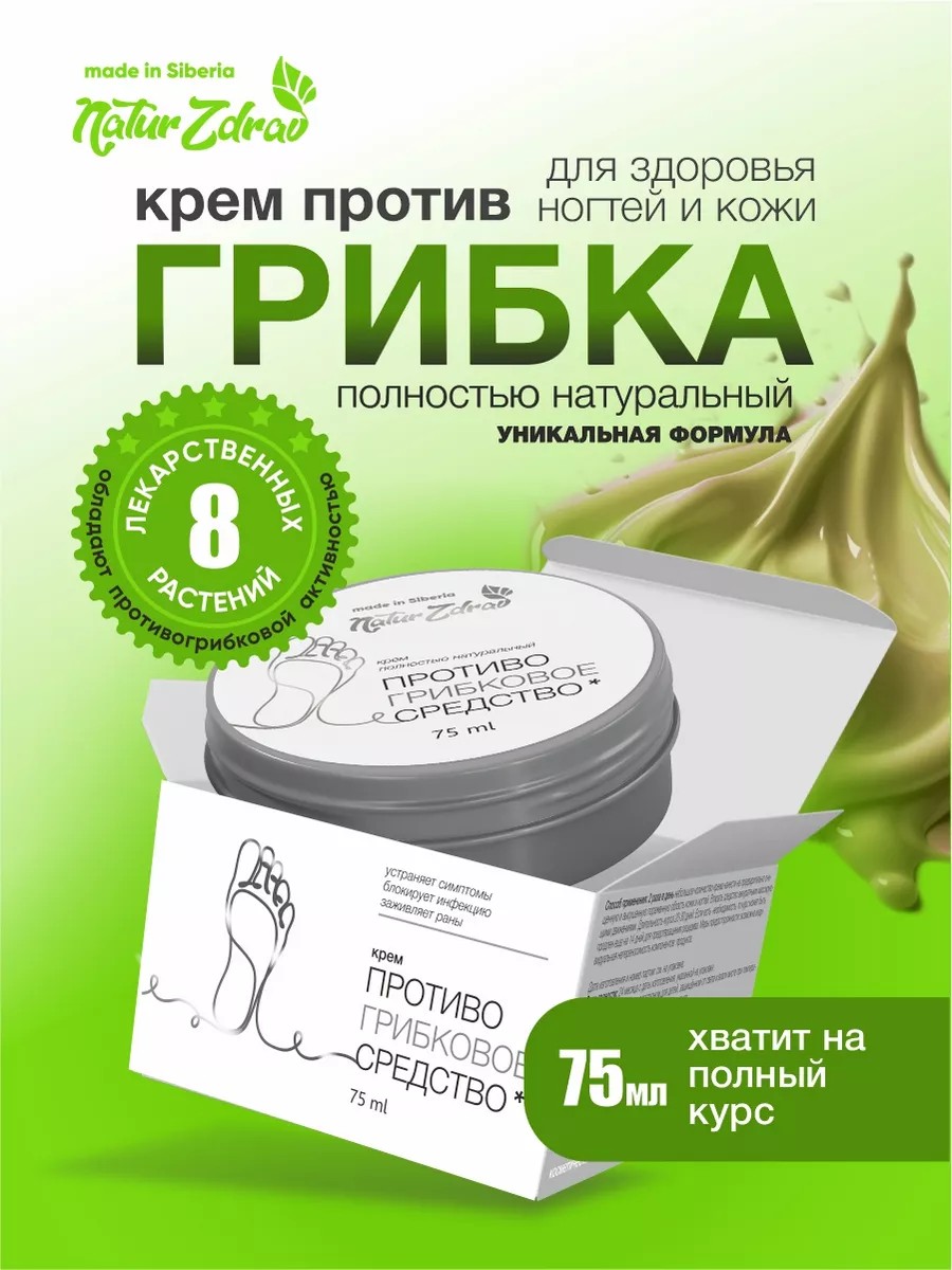 Крем от грибка ногтей от Натур здрав - комплекс растительных компонентов с установленной противогрибковой активностью, содержащий эфирные масла, терпеноиды, дубильные вещества, флавоноиды и полипептиды способствует устранению поверхностных патогенов, поражающих эпидермис кожи, ногти, волосяной покров и слизистые оболочки.