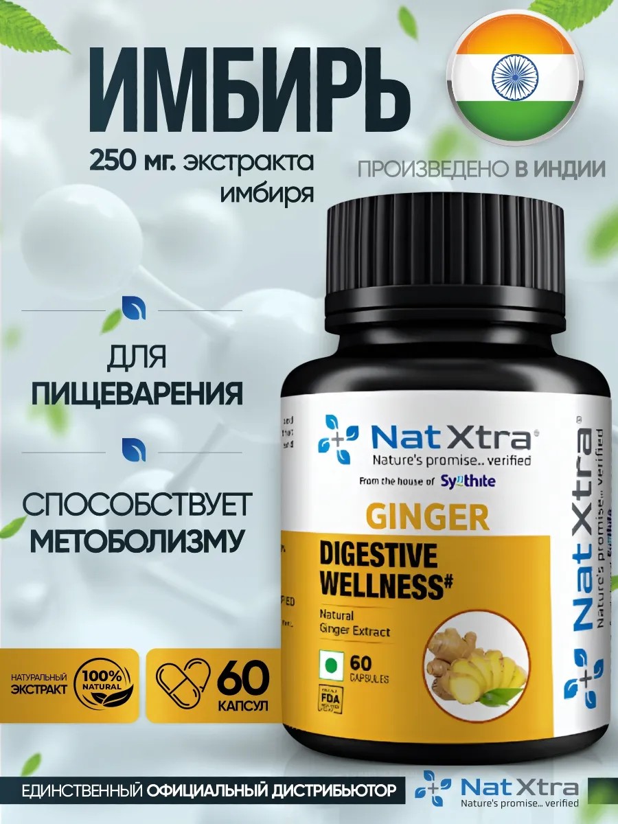 NatXtra Экстракт имбиря 250 мг молотый Индийская пищевая добавка