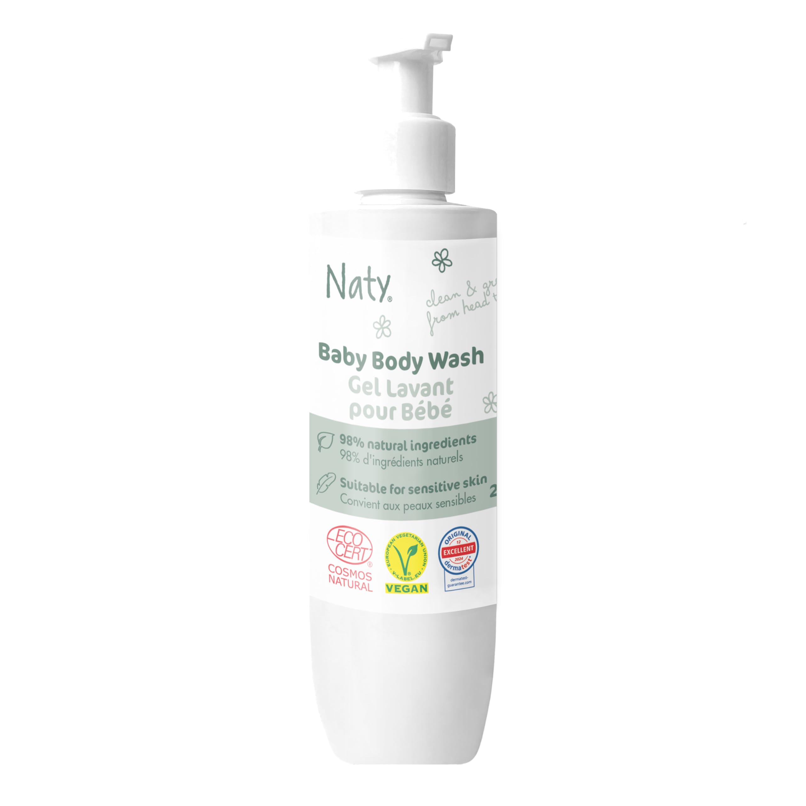 : Naty Baby Cleansing Gel is designed to gently cleanse babies' sensitive skin. Its 98 natural, COSMOS-certified, and vegan formula contains organic chamomile and calendula, known for their soothing properties. Non-irritating to the eyes, fragrance-free, and dermatologically tested, it is perfectly suited for newborns. The pump bottle is made from 94 recycled PET. Ingredients: Aqua [Water], Coco-glucoside, Glycerin, Cocamidopropyl betaine, Sodium coco-sulfate, Lauryl glucoside, Decyl glucoside, Caprylyl capryl glucoside, Chamomilla recutita (Matricaria) flower water , Calendula officinalis flower extract , Sodium chloride, Citric acid, Sodium benzoate, Potassium sorbate. From Organic farming P.when('A').execute(function(A) { A.on('a:expander:toggle_description:toggle:collapse', function(data) { window.scroll(0, data.expander. expander[0].offsetTop-100) }) }) Safety Warning Warning: External use only. Keep out of reach of children See moreOVER 30 YEARS OF TRUST: Developed in Sweden since 1994, a pioneer in bio-based products and certified skin-safe. B Corporation certified. Award-winning diapers, wipes, and menstrual products. Formerly Eco by Naty — now Naty. Vegan formula in a pump bottle made from 94 recycled PET. With organic chamomile and calendula, known for their soothing properties. Non-irritating to eyes, fragrance-free, and SLS SLES-free – perfect for everyday use. COSMOS Natural certified formula – 98 naturally derived ingredients, dermatologically tested for sensitive skin.Description du produit Le Gel Lavant Bébé Naty est conçu pour nettoyer en douceur la peau sensible des bébés. Sa formule naturelle à 98 , certifiée COSMOS et végane, contient de la camomille et du calendula bio, reconnus pour leurs propriétés apaisantes. Non irritant pour les yeux, sans parfum et testé dermatologiquement, il convient parfaitement aux nouveau-nés. Le flacon avec pompe est fabriqué à partir de 94 de PET recyclé. Ingrédients Aqua [Water], Coco-glucoside, Glycerin, Cocamidopropyl betaine, Sodium coco-sulfate, Lauryl glucoside, Decyl glucoside, Caprylyl capryl glucoside, Chamomilla recutita (Matricaria) flower water , Calendula officinalis flower extract , Sodium chloride, Citric acid, Sodium benzoate, Potassium sorbate. From Organic farming P.when('A').execute(function(A) { A.on('a:expander:toggle_description:toggle:collapse', function(data) { window.scroll(0, data.expander. expander[0].offsetTop-100) }) }) Avertissement De Sûreté Warning: External use only. Keep out of reach of children Voir plusPLUS DE 30 ANS DE CONFIANCE : Développés en Suède depuis 1994, pionnier des produits biosourcés et certifiés sûrs pour la peau. B Corporation certifiée. Couches, lingettes protections menstruelles primées. Anciennement Eco by Naty — aujourd'hui Naty. Formule végane dans un flacon à pompe en PET recyclé à 94 . Avec camomille bio et calendula, connus pour leurs propriétés apaisantes. Non irritant pour les yeux, sans parfum et sans SLS SLES – parfaite pour un usage quotidien. Formule certifiée COSMOS Natural – 98 d'ingrédients d'origine naturelle, testée dermatologiquement pour les peaux sensibles.Naty Gel Lavant Bébé 240 ml – Origine Naturelle, Non irritant pour les yeux, Sans Parfum, Sans SLS SLES, Testé Dermatologique, Vegan, Certifié COSMOS Natural, Pour Peaux Sensibles 240 ml (Lot de 1)