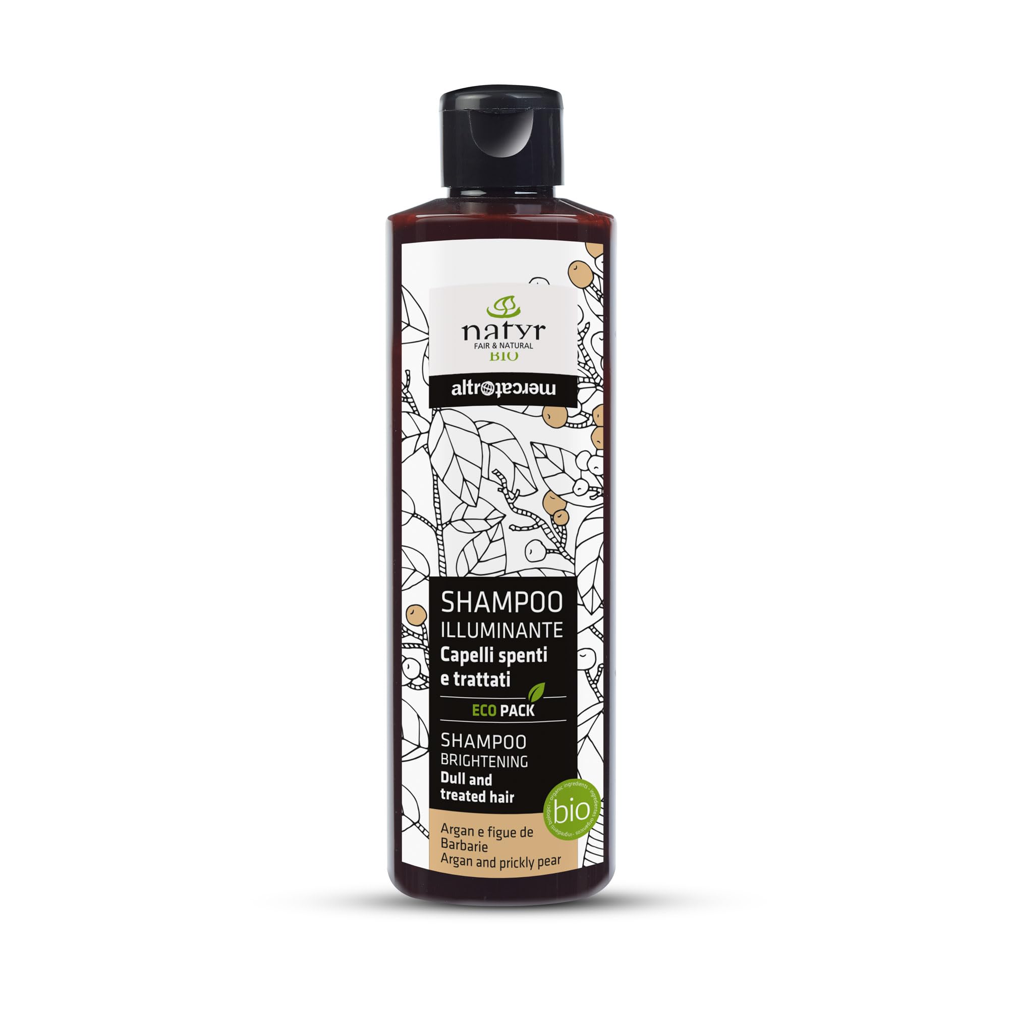 A gentle shampoo, ideal for naturally cleansing dull hair, restoring its silky softness. Enriched with natural argan and prickly pear oils, it brings softness and shine to the hair by gently cleansing it while respecting the skin's pH. Natural mullein extract helps the hair regain its radiance. INGREDIENTS Aqua, Saccharum officinarum extract, Ammonium lauryl sulfate, Coco-glucoside, PCA glyceryl oleate, Aloe barbadensis leaf juice, Ammonium coco-sulfate, Argania spinosa oil, Opuntia ficus-indica seed oil, Chamomilla recutita flower extract, Hydrolyzed verbascum thapsus flower, sodium cococoyl Glyceryl oleate, Hydrolyzed rice protein, Disodium cocoyl glutamate, Polyglyceryl-4 caprate, Glycerin, Tocopherol, Hydrogenated palm glycerides citrates, Citric acid, Lactic acid, Sodium benzoate, Potassium sorbate, Parfum, Benzyl alcohol, Limonene, Linalool DIRECTIONS FOR USE Apply the product to damp scalp with a massage. Rinse thoroughly with water. SAFETY WARNING For external and topical use only. See moreIt brings softness and shine to hair by gently cleansing it while respecting the skin's pH. Enriched with natural argan and prickly pear oils. Elegant fragrance with notes of white flowers and spices. Lightweight texture that promotes absorption. For dull and treated hair.NATYR - Shampooing illuminant - cheveux ternes - argan et - bio - 250 mlDESCRIPTION DU PRODUIT DESCRIPTION DU PRODUIT Un shampooing doux, idéal pour nettoyer de manière naturelle les cheveux ternes en leur redonnant soyeux et doux. Enrichi en huiles naturelles d'argan et de figue de barbarie, il apporte douceur et luminosité aux cheveux en les nettoyant doucement dans le respect du pH cutané. L'extrait naturel de molène aide le cheveu à retrouver son éclat. INGRÉDIENTS Aqua, Saccharum officinarum extract, Ammonium lauryl sulfate, Coco-glucoside, PCA glyceryl oleate, Aloe barbadensis leaf juice, Ammonium coco-sulfate, Argania spinosa oil, Opuntia ficus-indica seed oil, Chamomilla recutita flower extract, Hydrolyzed verbascum thapsus flower, sodium cococoyl Glyceryl oleate, Hydrolyzed rice protein, Disodium cocoyl glutamate, Polyglyceryl-4 caprate, Glycerin, Tocopherol, Hydrogenated palm glycerides citrates, Citric acid, Lactic acid, Sodium benzoate, Potassium sorbate, Parfum, Benzyl alcool, Limonène, Linalool MODE D'EMPLOI Appliquer le produit sur le cuir chevelu humide en massant. Rincer abondamment à l'eau AVERTISSEMENT DE SÉCURITÉ Pour usage extérieur et topique uniquement Voir plusapporte douceur et luminosité aux cheveux en les nettoyant délicatement dans le respect du pH cutané. Enrichi en huiles naturelles d'argan et figue de barbarie. Parfum élégant avec des notes de fleurs blanches et d'épices. Texture légère qui favorise l'absorption. Cheveux ternes et traités.