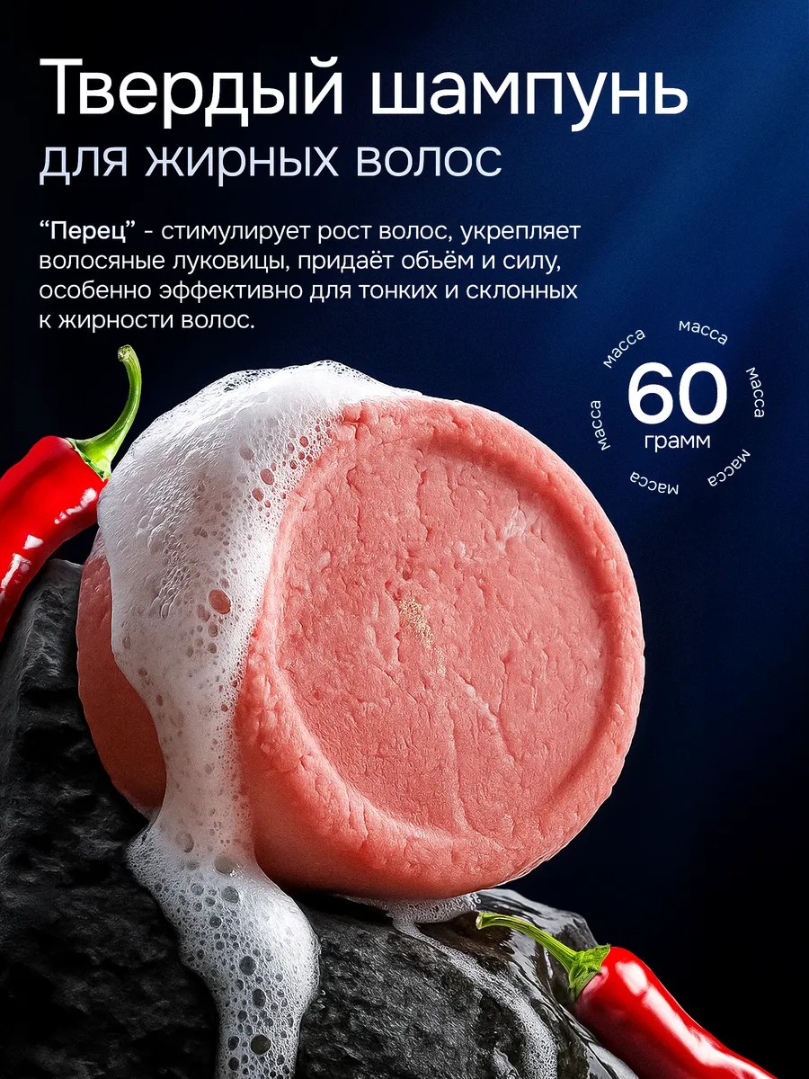 Шампунь мыло эффективно очищает волосы. Безсульфатная основа не нарушает естественный РН баланс кожи головы, предотвращая сухость. ПАВ кокосовый и олеоризин перца красного осуществляет глубокую очистку кожи головы и волос, стимулируя рост новых волос.