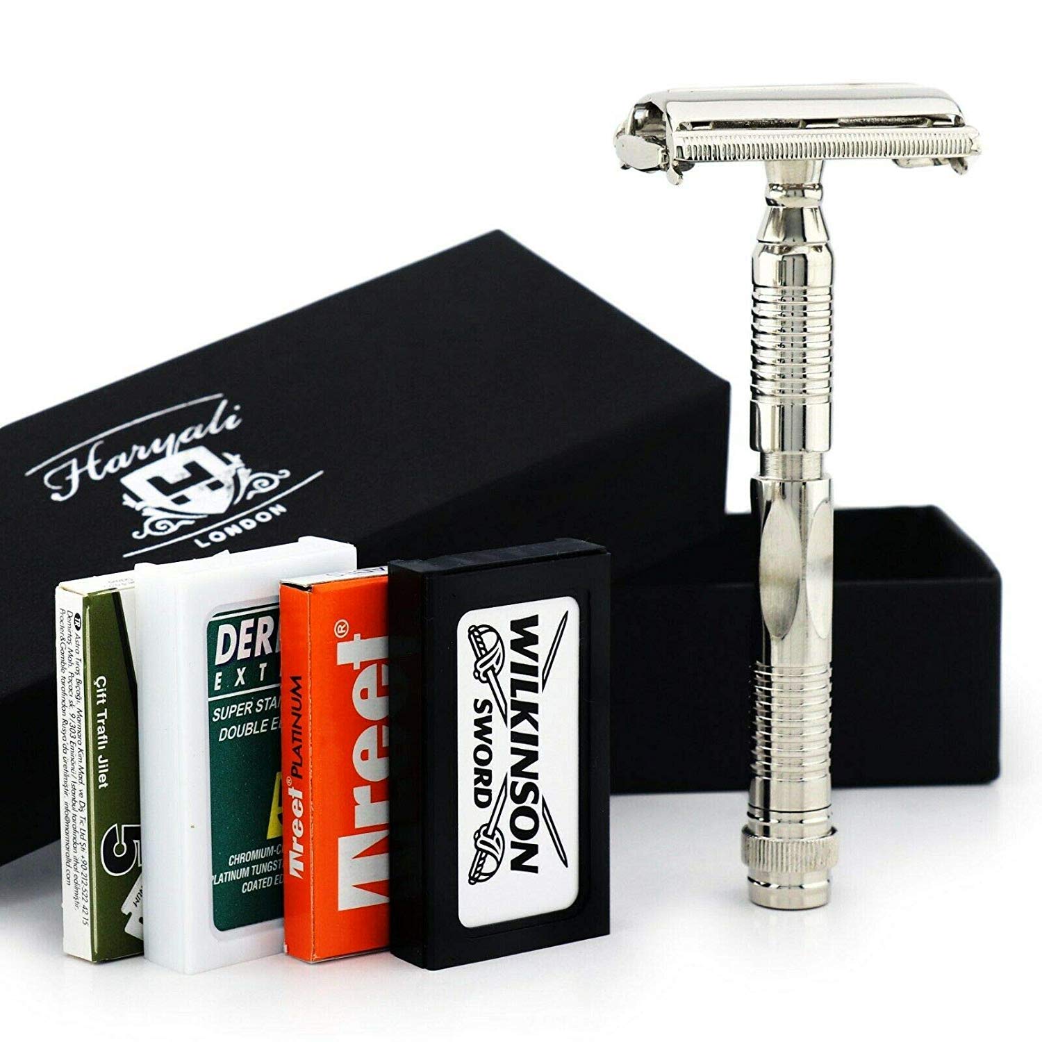 Perfect gift for every gentleman who enjoys the miracles of traditional wet shaving!.This reliable razor was built for a long service life and is made of chrome -plated brass.He doesn't rust or stain.Our black leather bag protects your razor if it is not needed.Very useful when traveling!.Butterfly mechanisms offer a simple and safe way to replace the blades, just turn the handle and the head opens for you!Carefully remove the old blade and drop the new place on the spot, turn it back and you are ready for shaving!.If you love a closed and clean shave - the razor is an art.That is why our razor is designed to offer you the best possible shave, with its extremely Robunser new twist to open security razor offers you one of this old school, Close Shaves for a classic, clean look.